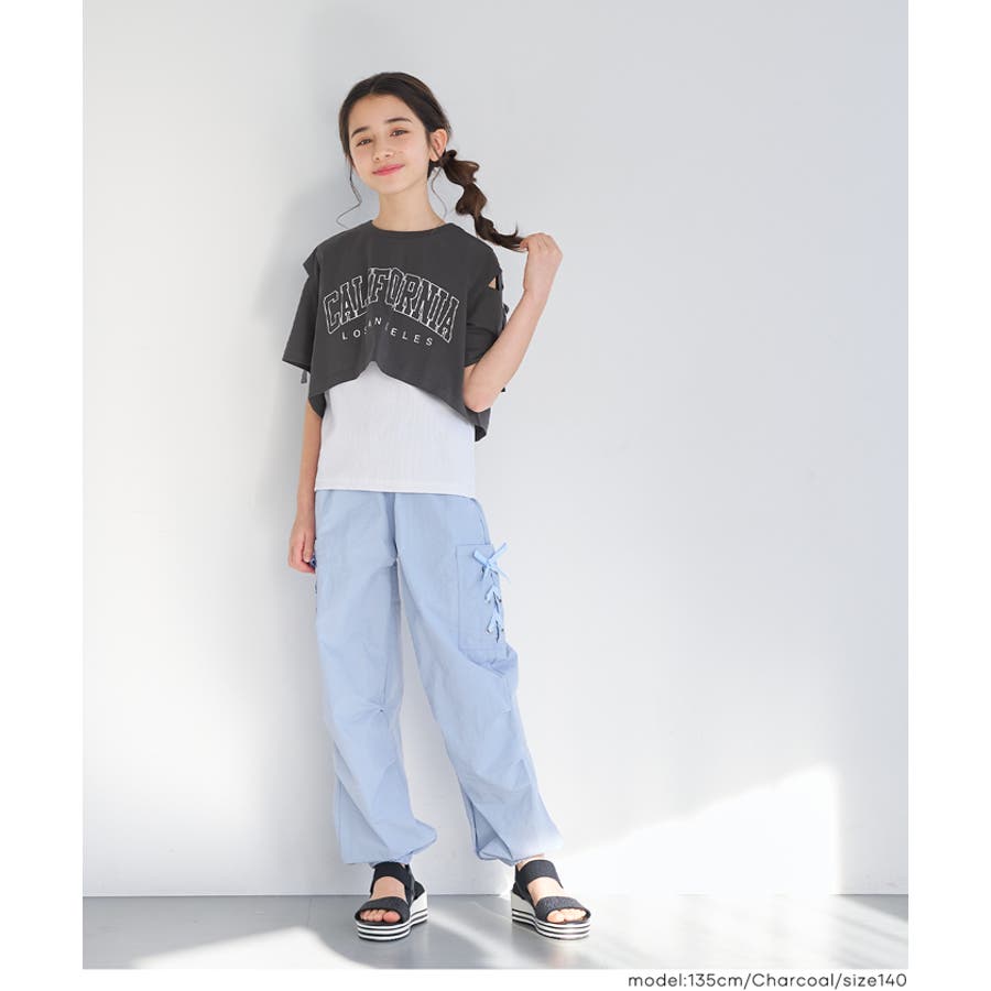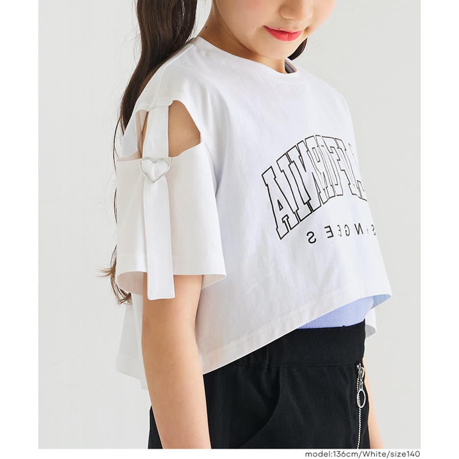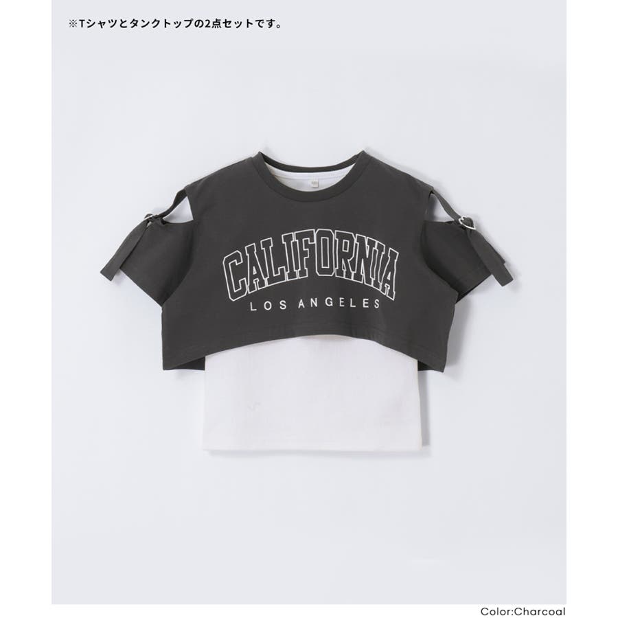 子ども 子供 120 130 140 150 通園 通学 子供服 親子 ジュニア服 COCA coca コカ トップス キッズ 2点セット セット タンクトップ 半袖 穴あき ロゴ ロゴT ハート ストレッチ 女の子 ガーリー