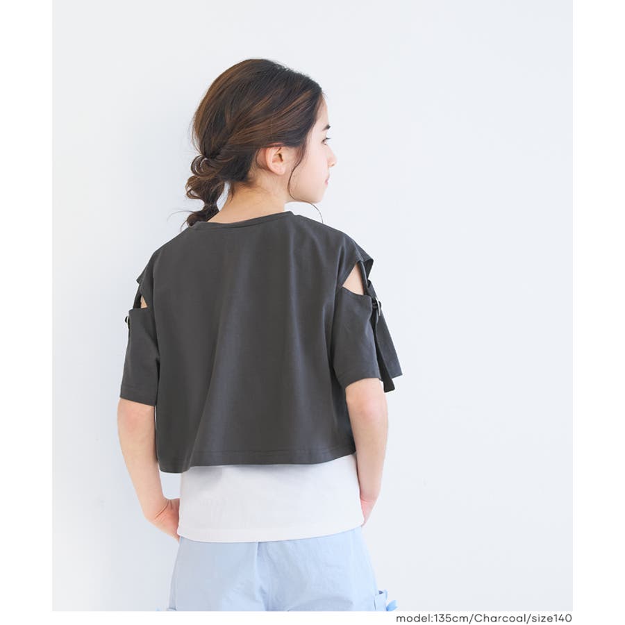 ・トレンド感のある肩あきデザインTシャツ