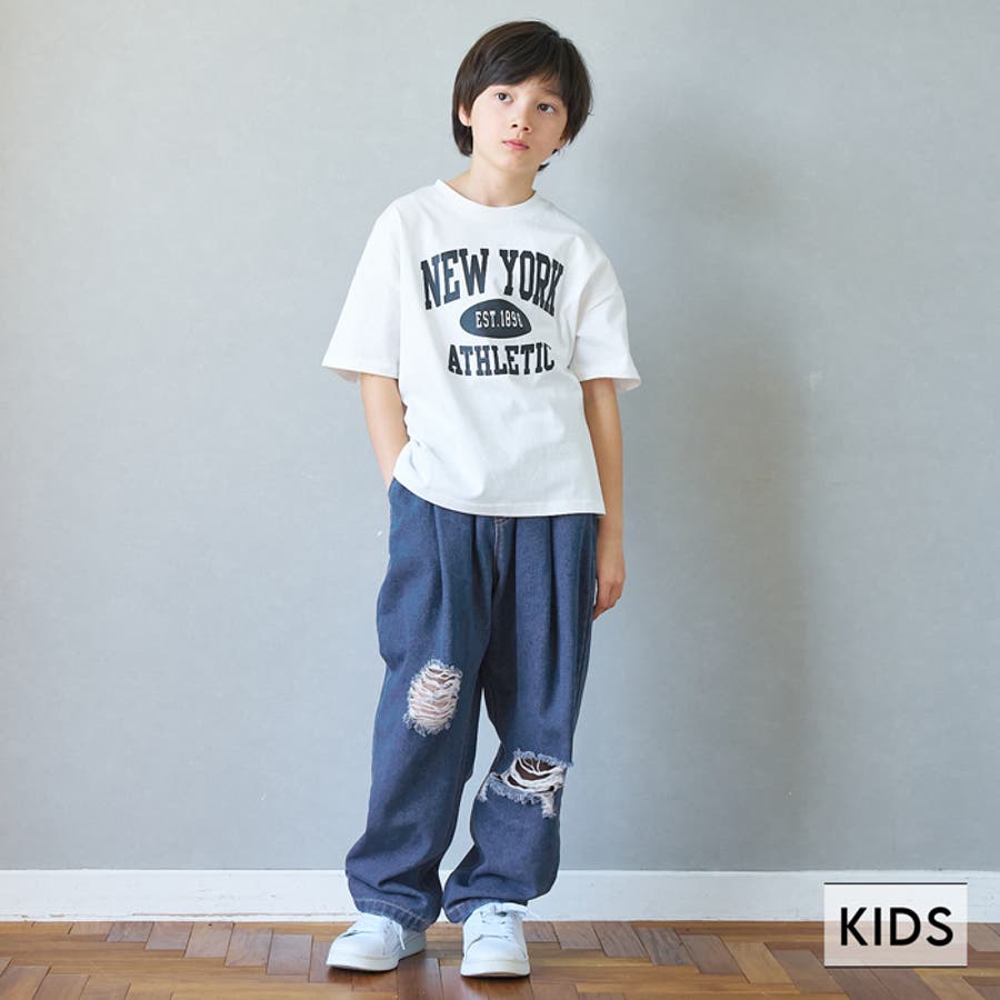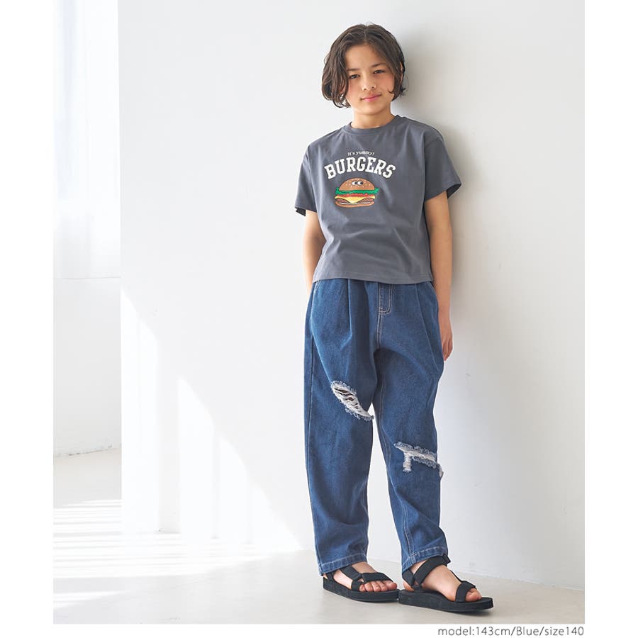 デニムダメージ加工タックパンツ キッズ