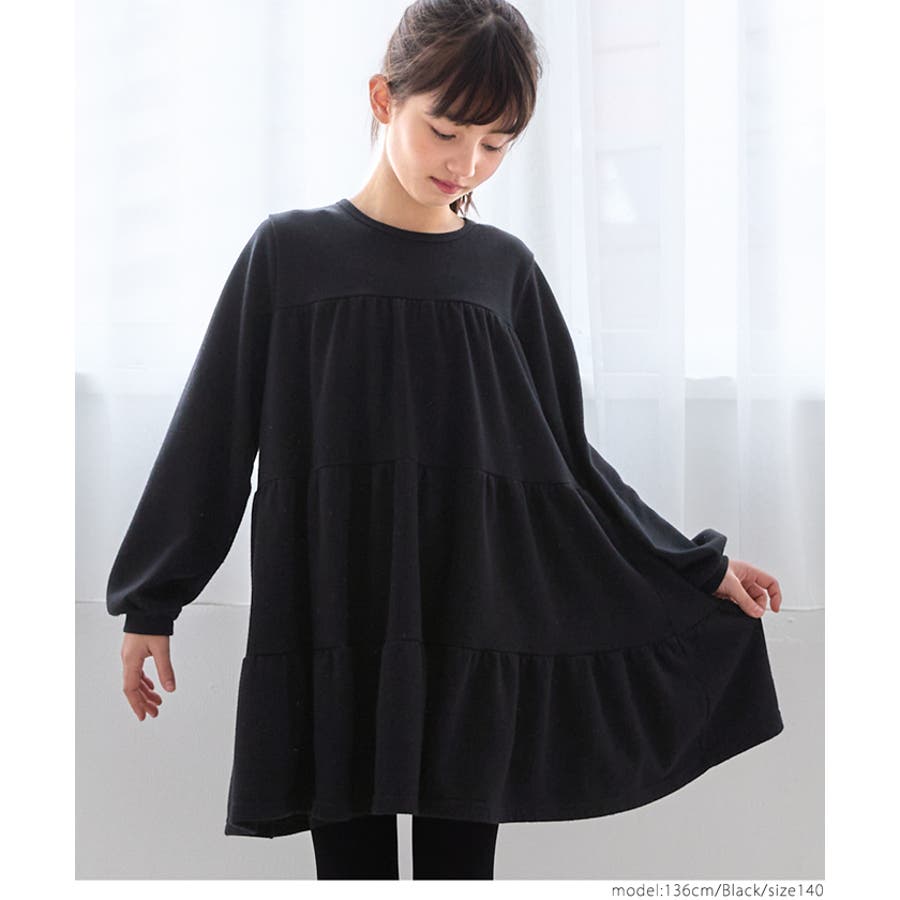 ラメ裏毛ティアードチュニックワンピース キッズ