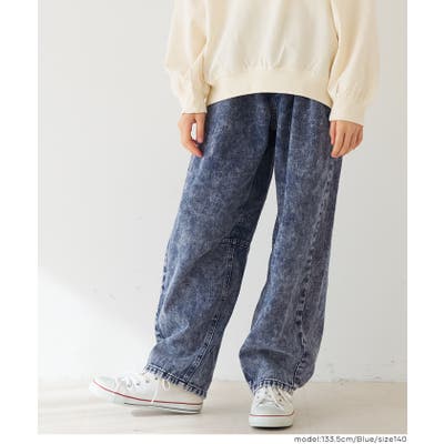 独特の風合いが目を惹くケミカル加工を施した、キッズ用デニムカーブパンツ。