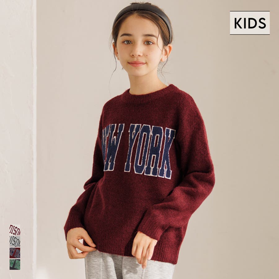 親子リンクが楽しめる、ワッペンロゴが可愛いキッズニットトップス
