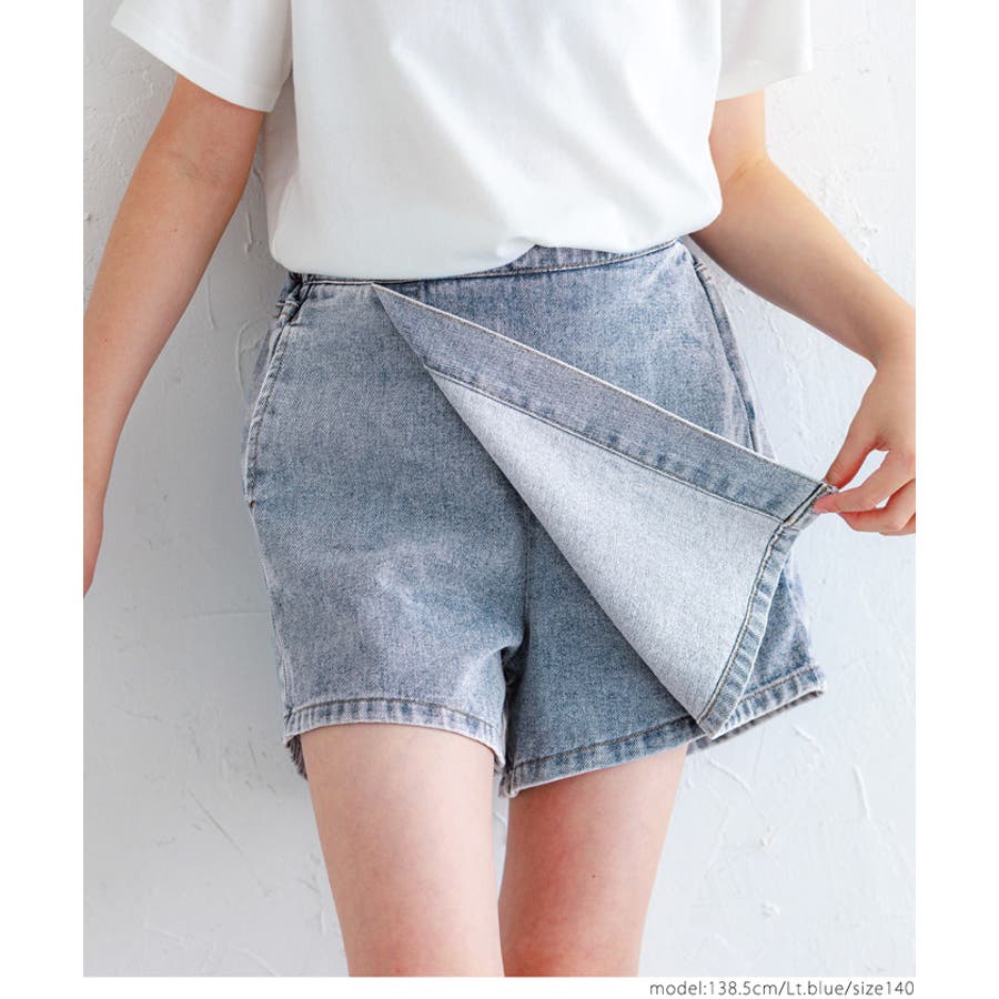 ジュニア パンツ スカパン 巻きスカート ミニ丈 ショート丈 ウエストゴム ポケット付き カジュアル ガールズ 女の子 子供服 120 130 140 150 COCA