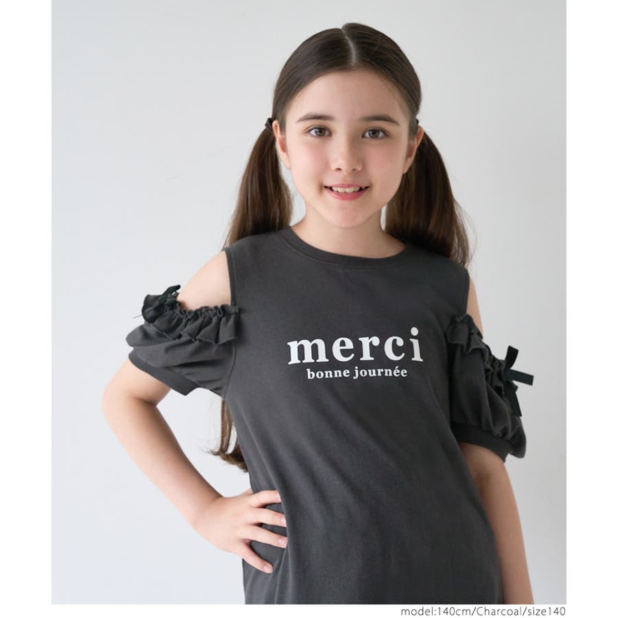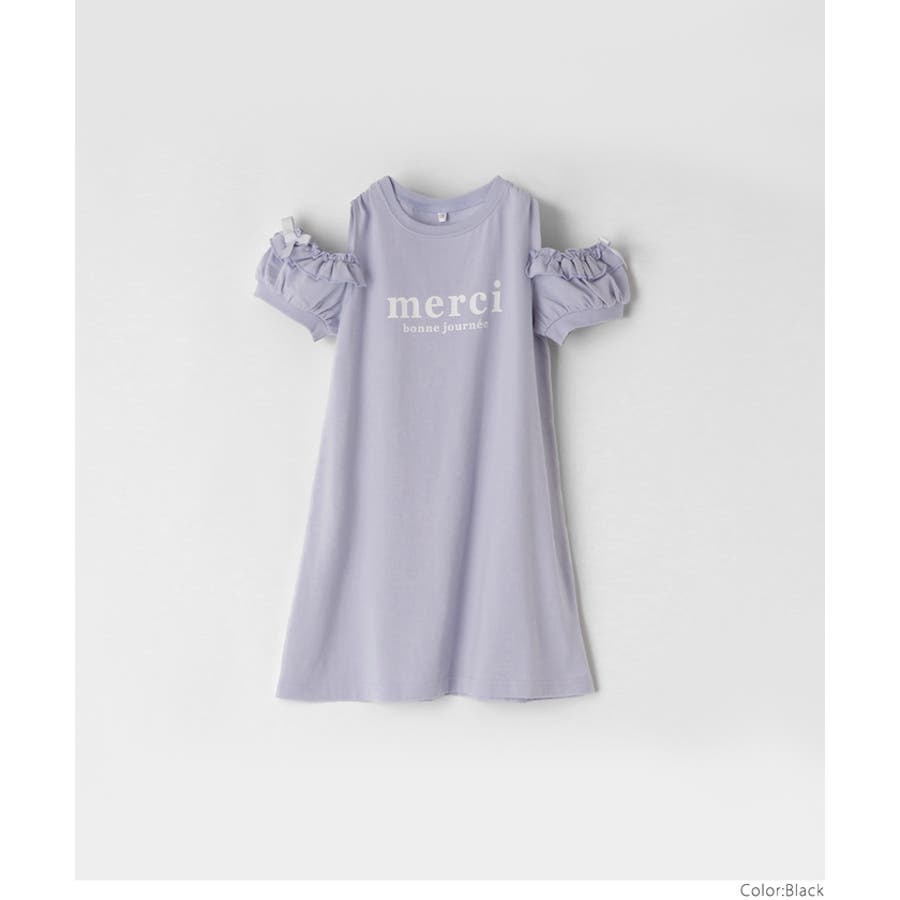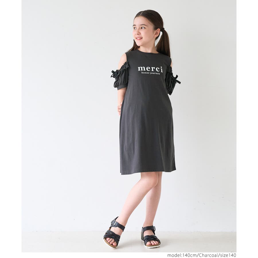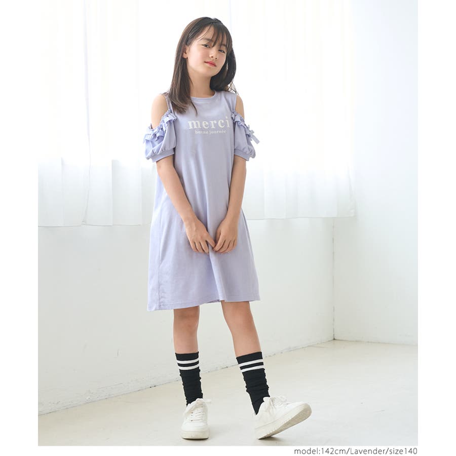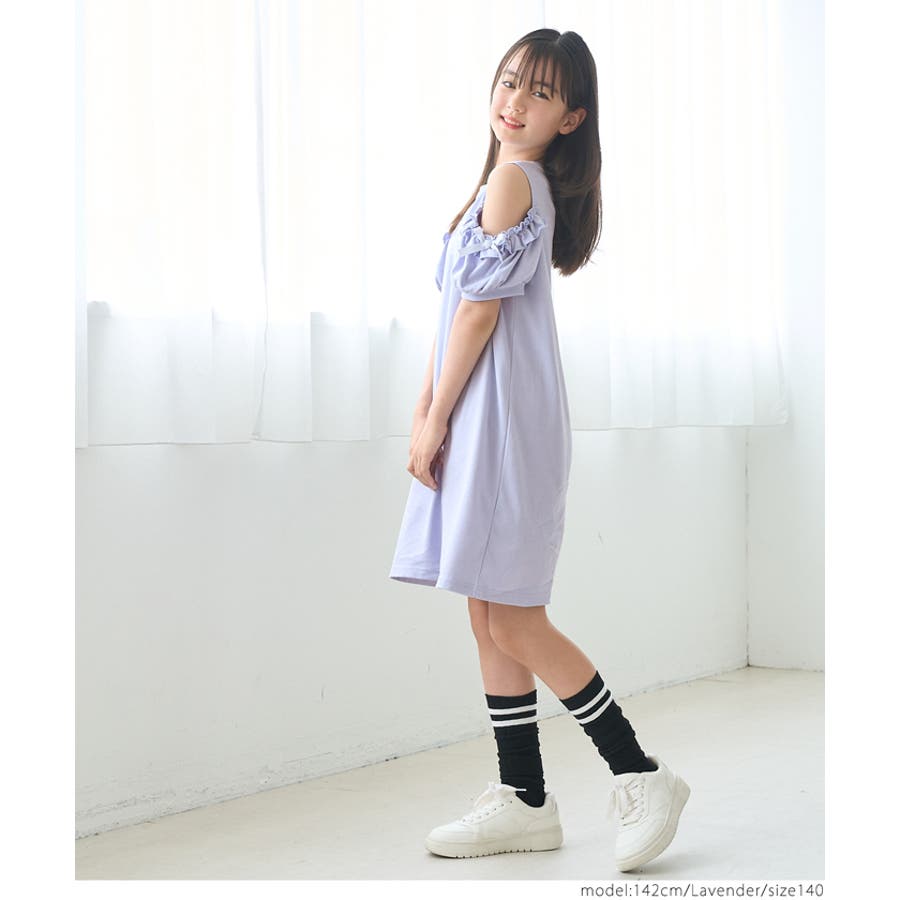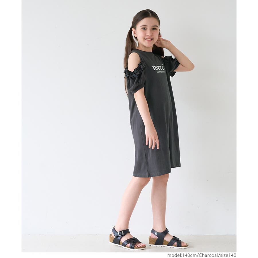 袖フリル肩あきワンピース キッズ