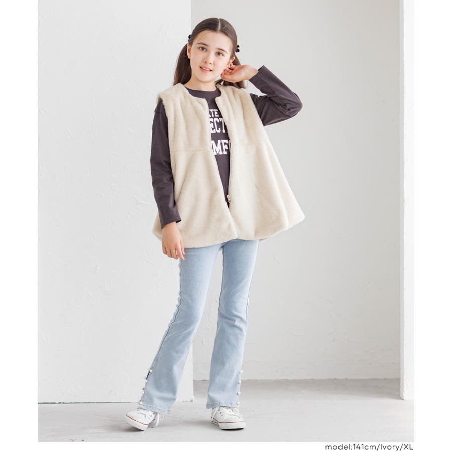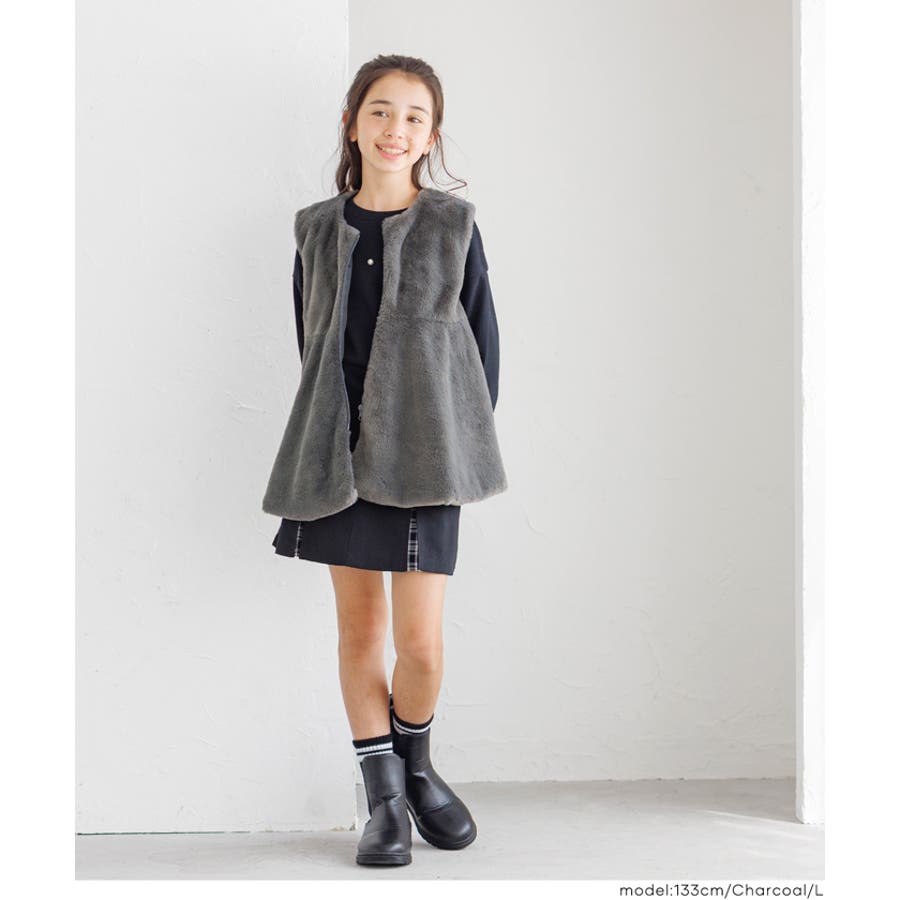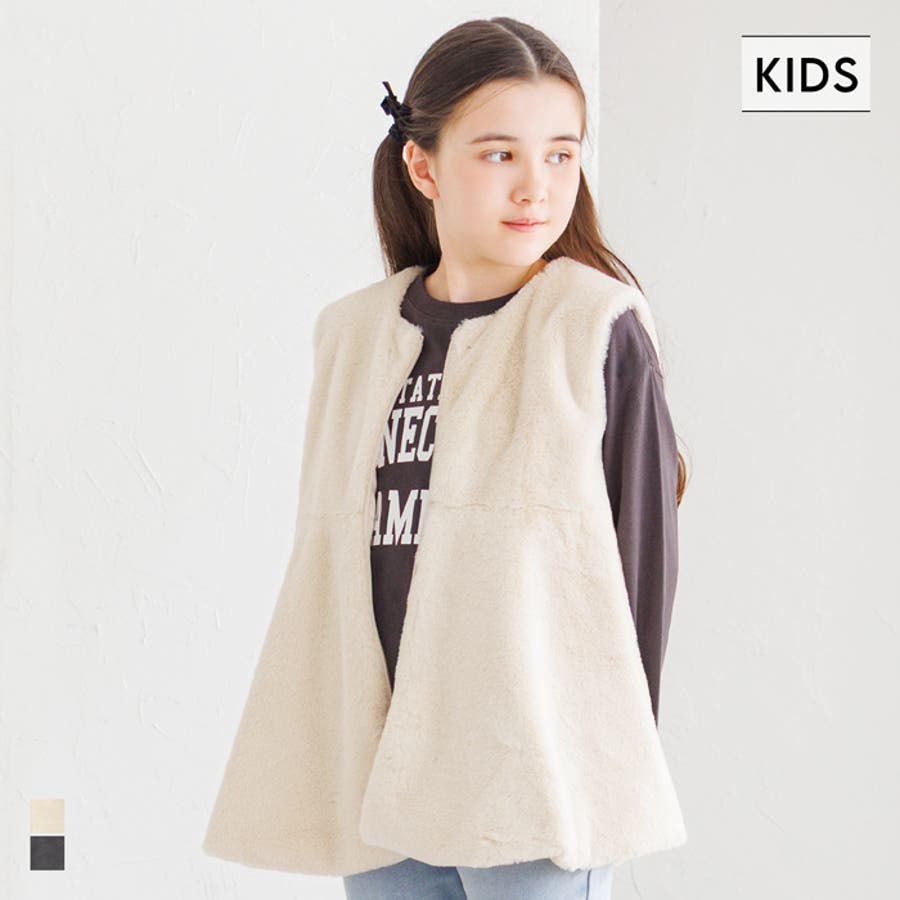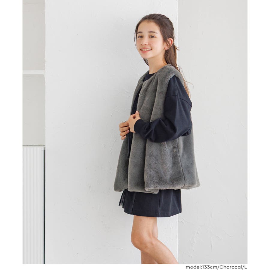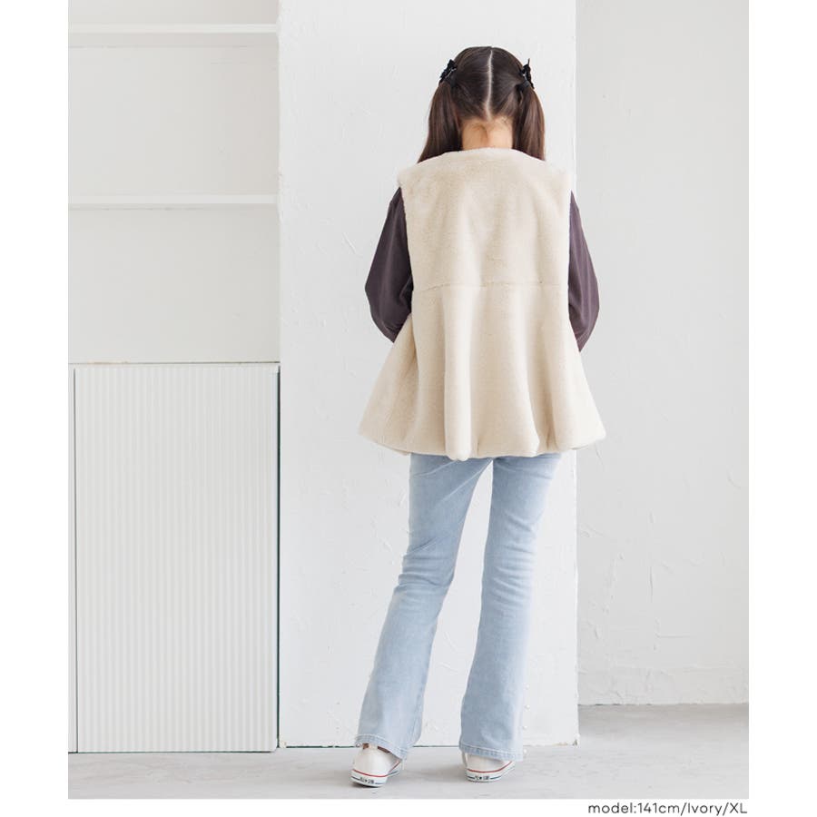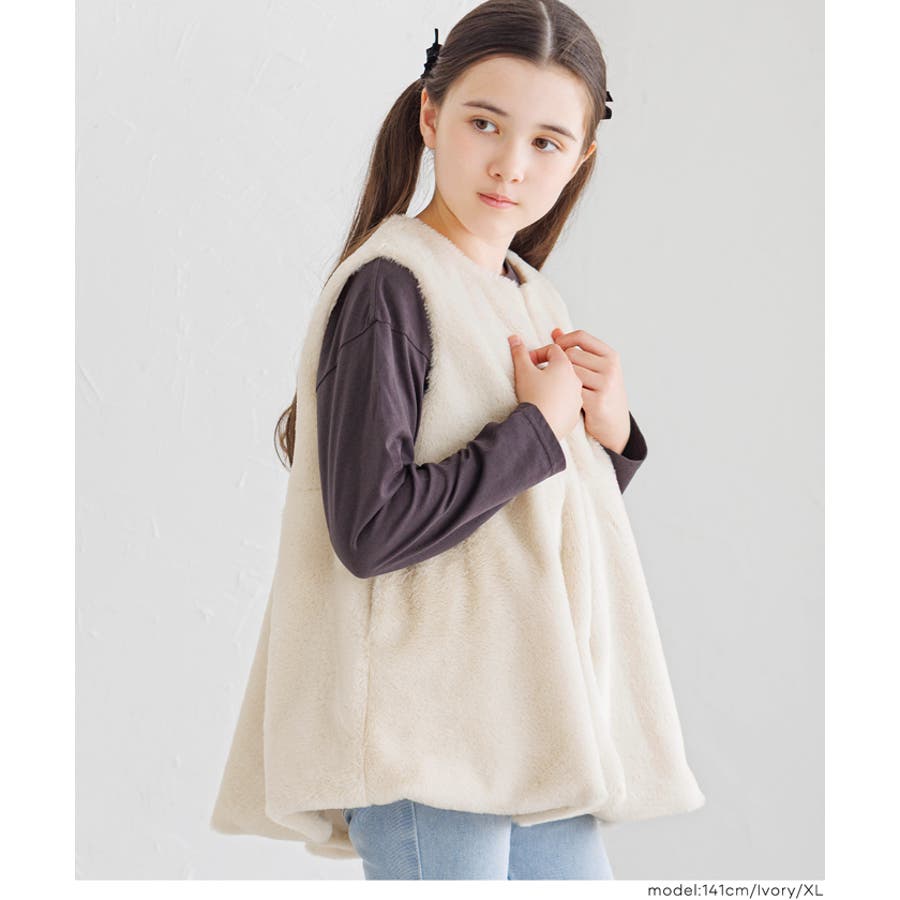 ジュニア アウター ベスト ファー ファーベスト フェイクファー ジップアップ ペプラム ノーカラー ガールズ 女の子 子供服 リンクコーデ ペアルック COCA おしゃれ 可愛い きれいめ 秋 秋服 冬 冬服 おとな 大人 女性ファッション 韓国 カジュアル プチプラ 10代 20代 30代 40代 50代 オフィス ホーム シンプル