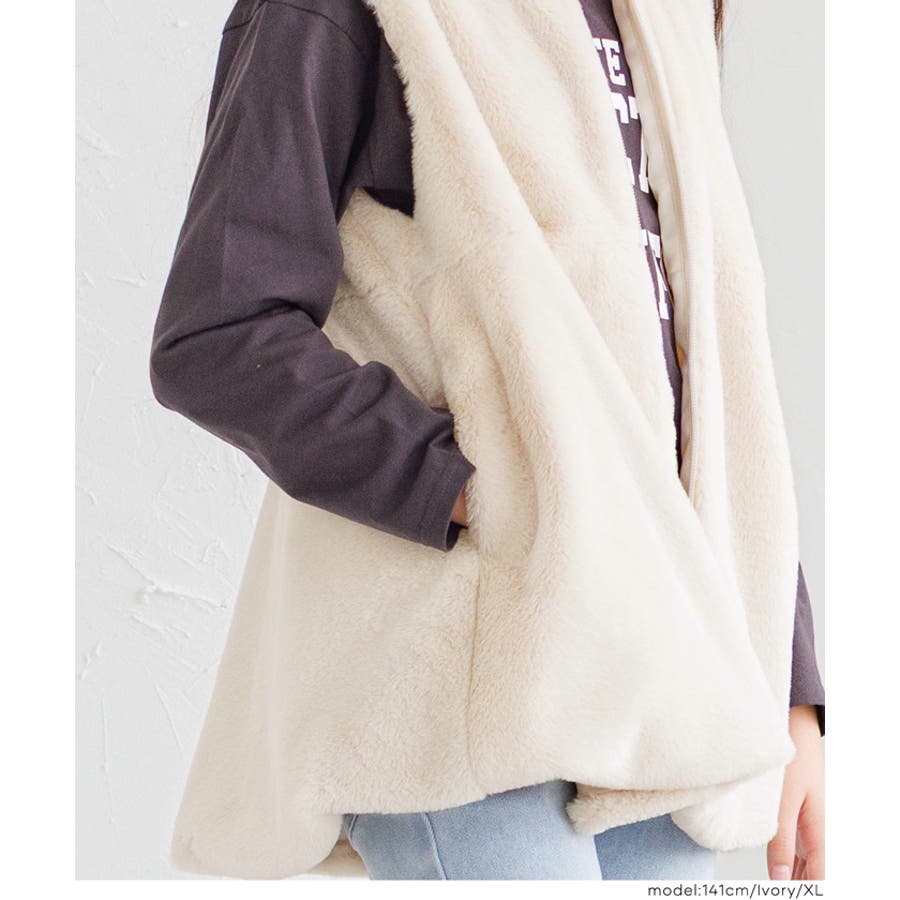 ・ふわふわのフェイクファー素材が可愛らしいジップベスト