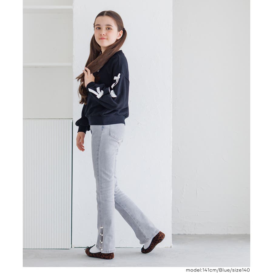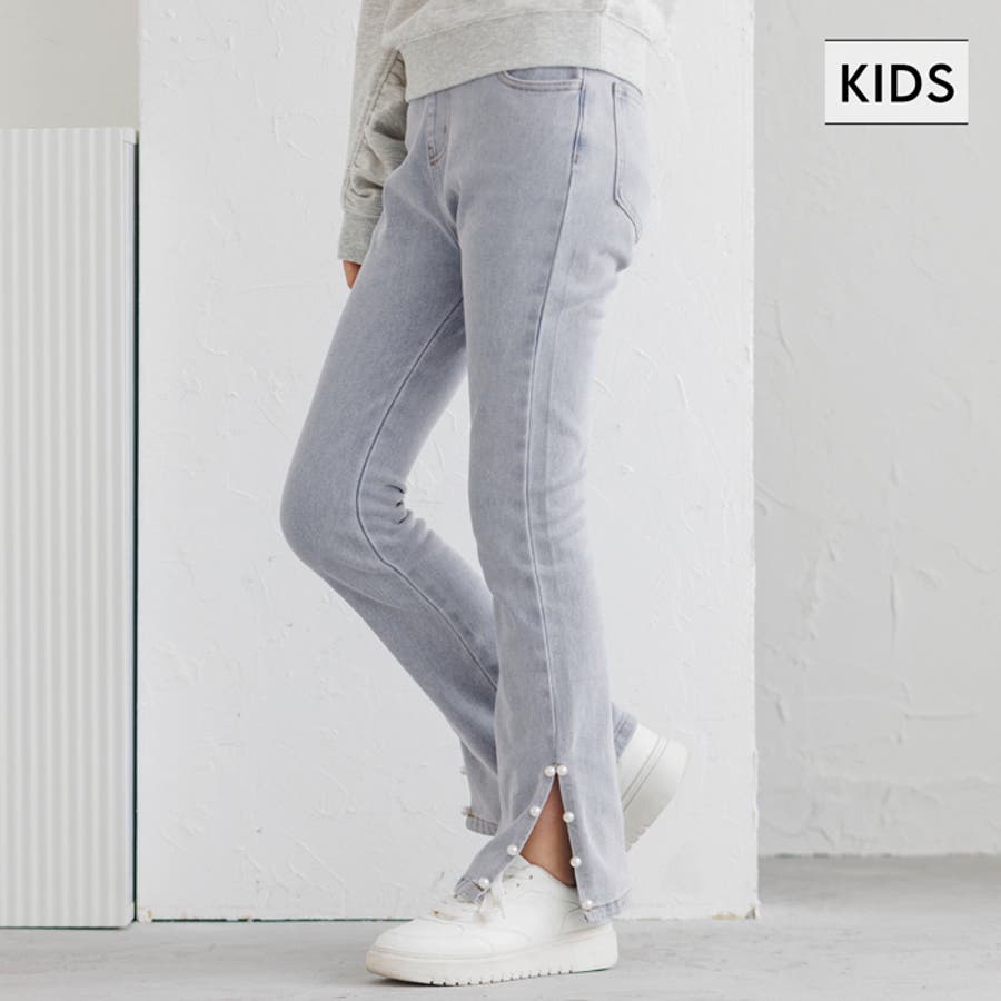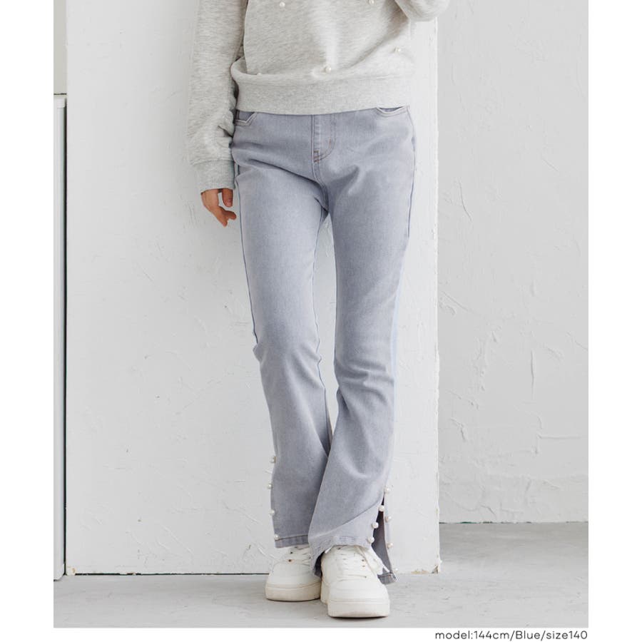 裾のパールがポイント♪ ガーリーデニムパンツ