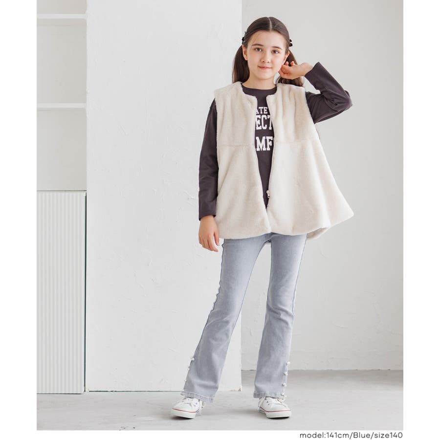 ジュニア ボトムス デニムパンツ ジーパン ロング丈 ウエストゴム ポケット パール カジュアル 女の子 ガールズ 120 130 140 150 コカ COCA coca COCA coca