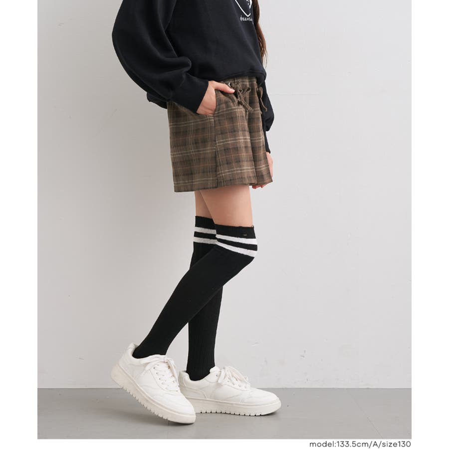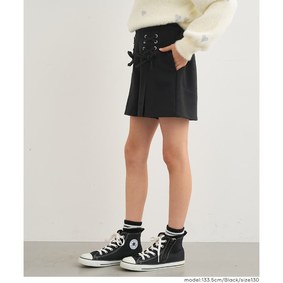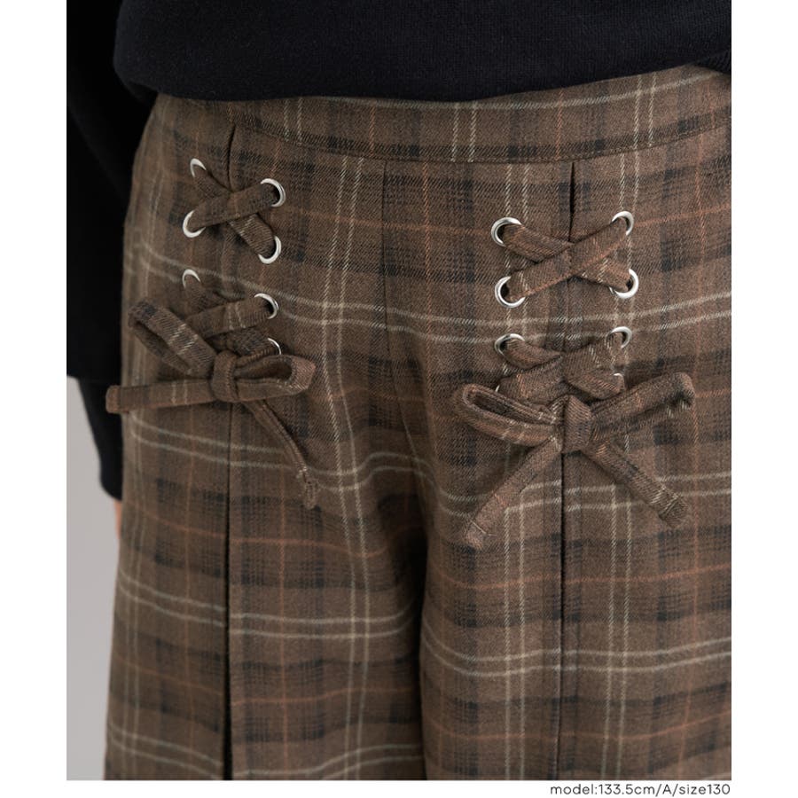 ジュニア ボトムス ショートパンツ 短パン レースアップ リボン スリット ウエストゴム ポケット 無地 チェック柄 学校 女の子 ガールズ 120 130 140 150 COCA