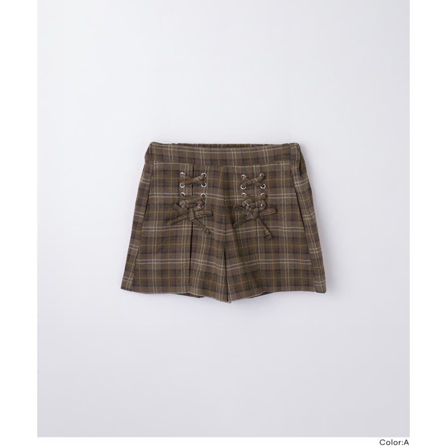 レースアップがポイント♪ ガーリーチェックショートパンツ