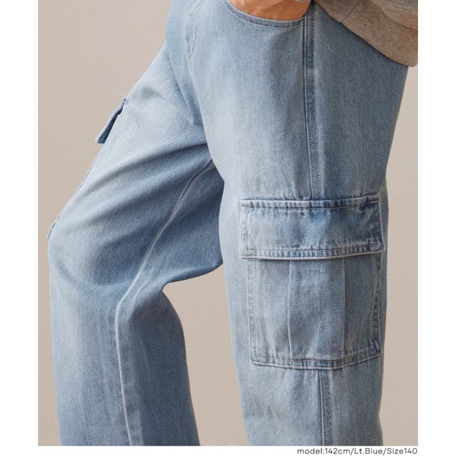 ボトムス デニム キッズ ジーンズ カーゴパンツ 子供服 ライトデニム ポケット ストリート カジュアル 男女兼用 120 130 140 150 コカ COCA coca COCA coca