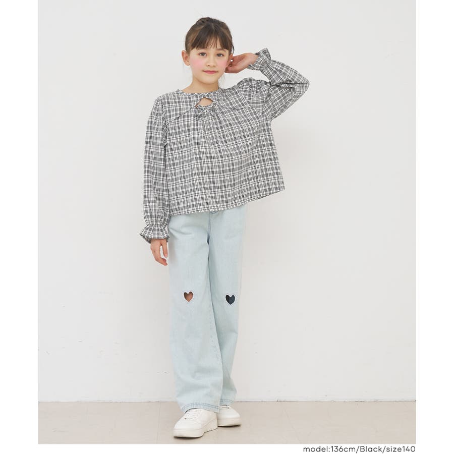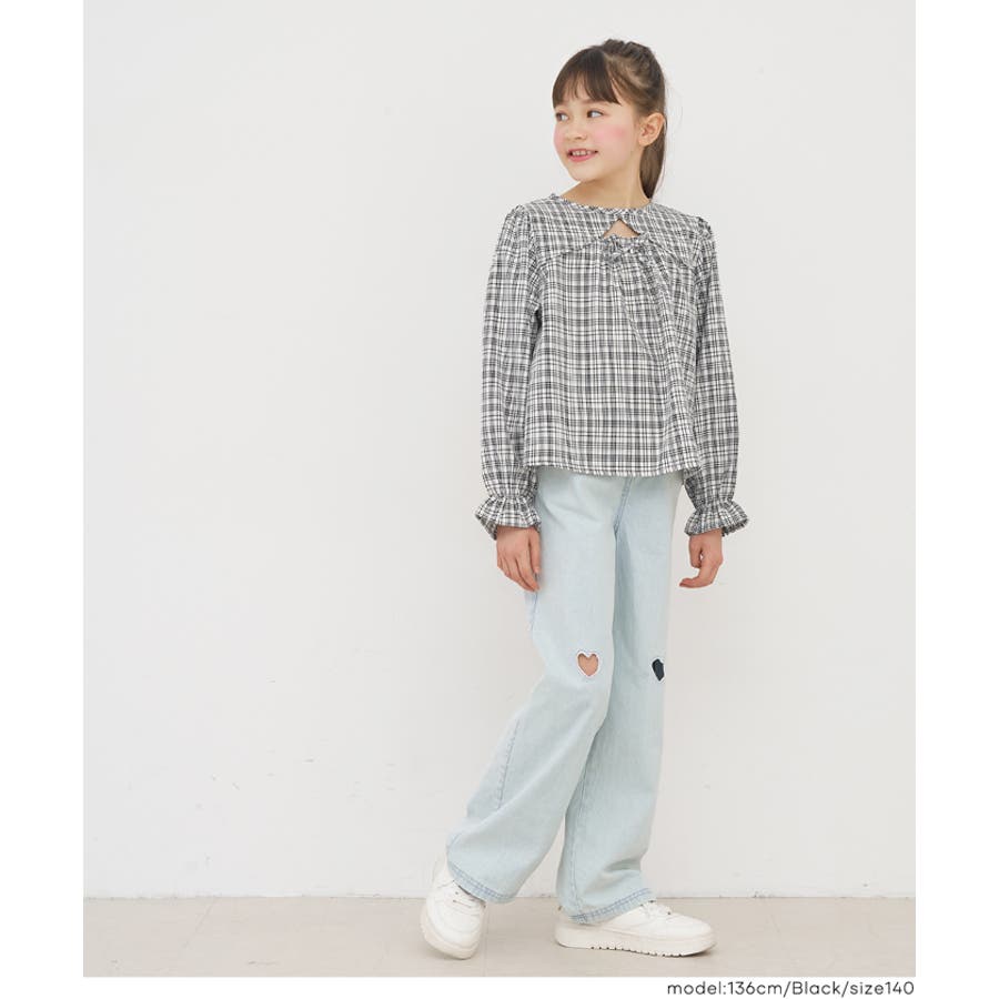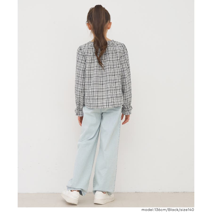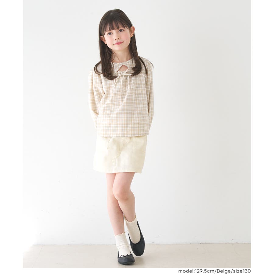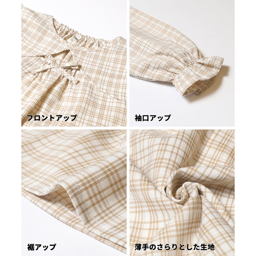 ジュニア チェック ブラウス トップス リボン トレンド フリル カジュアル 通園 通学 120 130 140 150 COCA