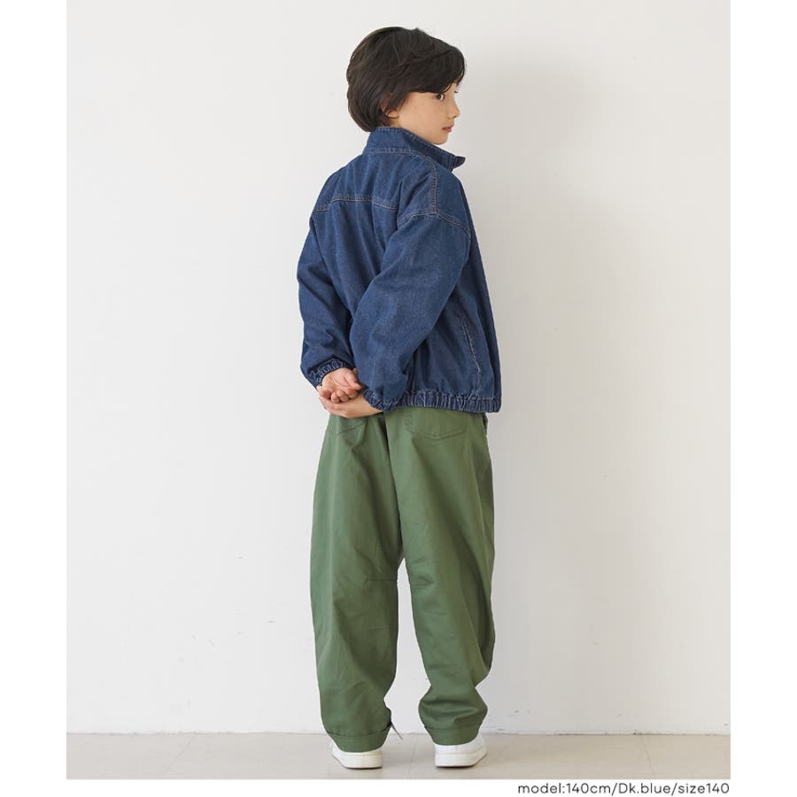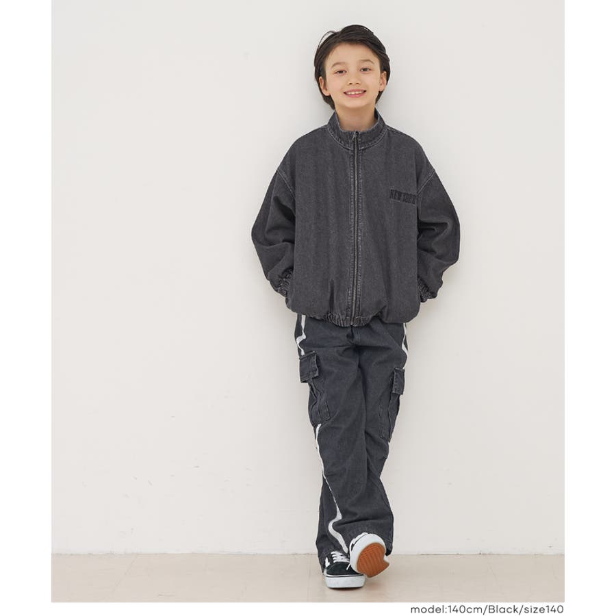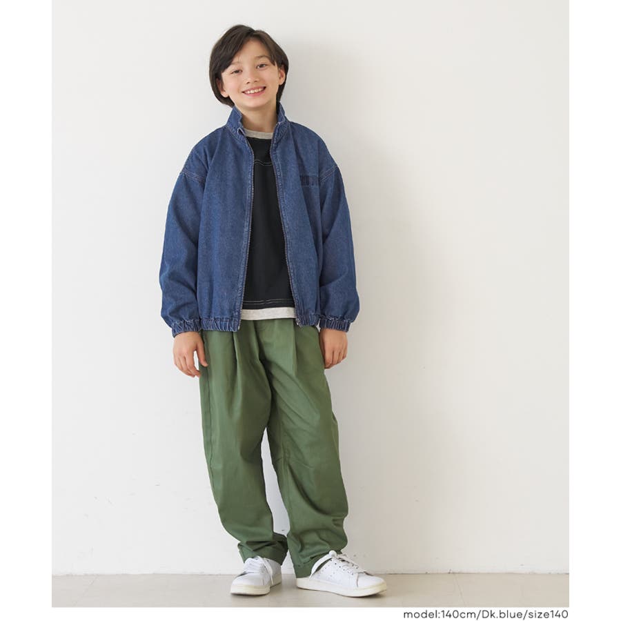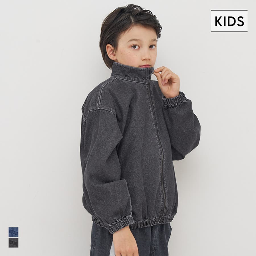 カジュアルなデニム素材を使用した、キッズ用ブルゾン。