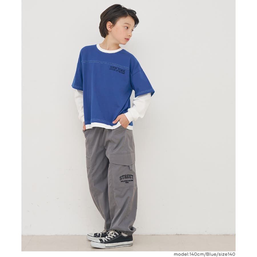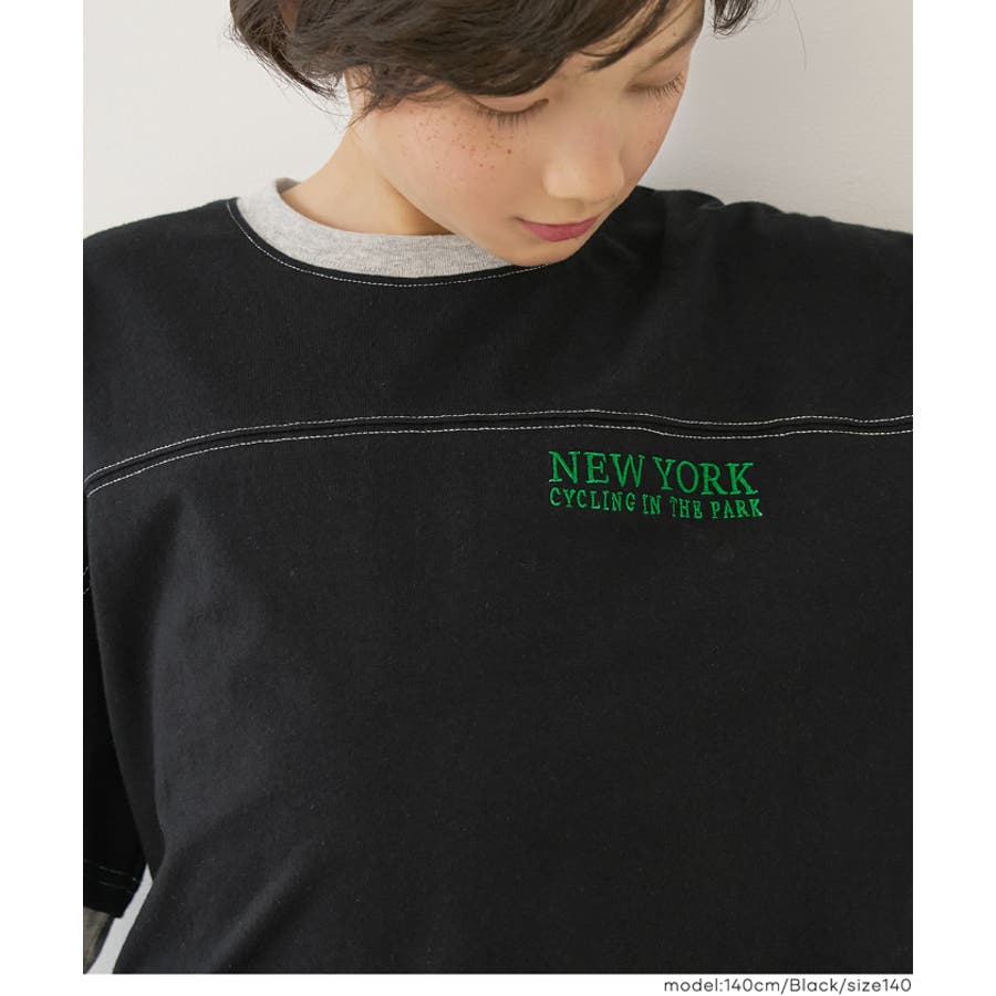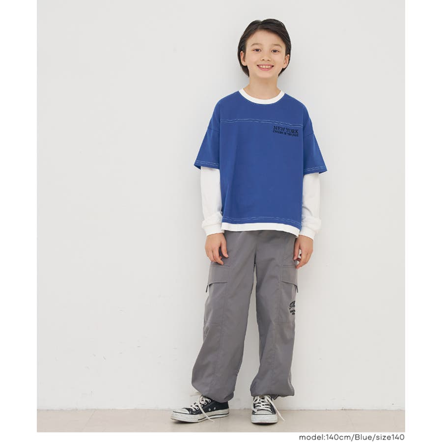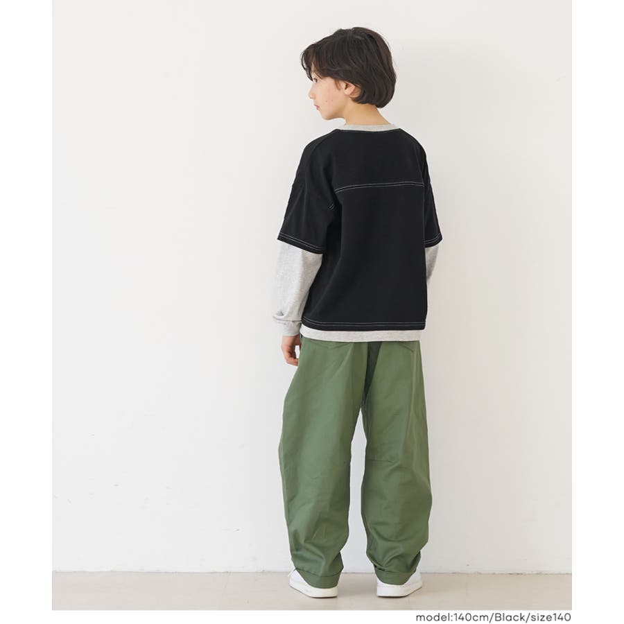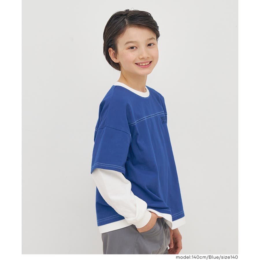レイヤード風のデザインに、さりげない刺繍をあしらったキッズ用トップス。