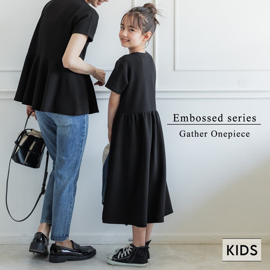キッズ 親子お揃いエンボスギャザー 切替ワンピース