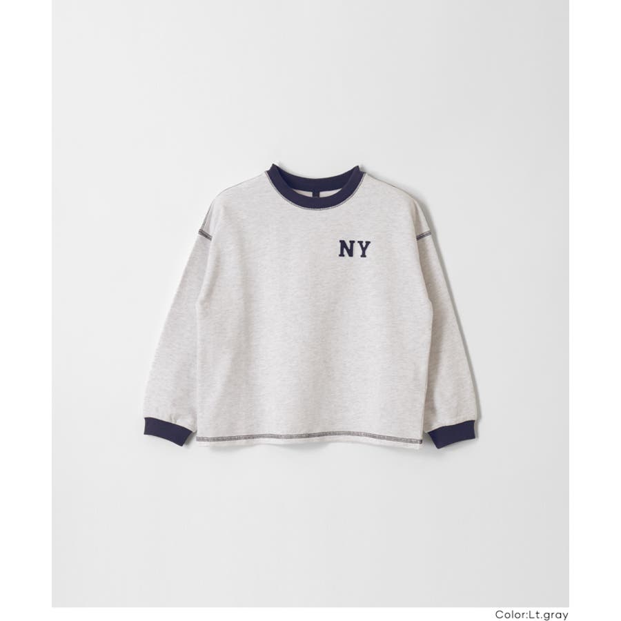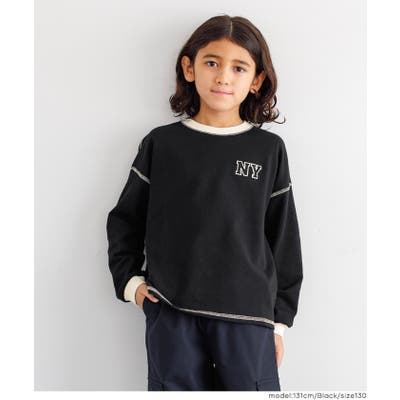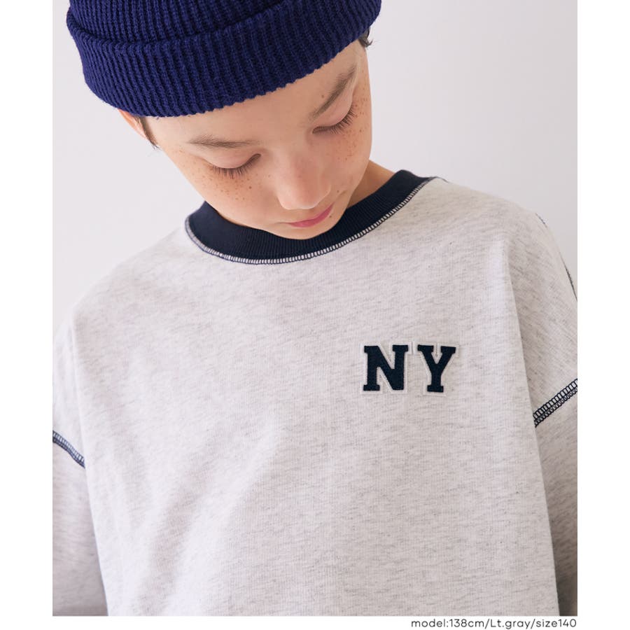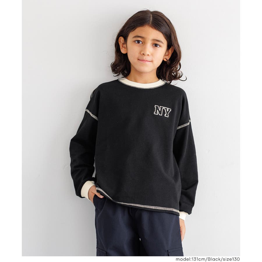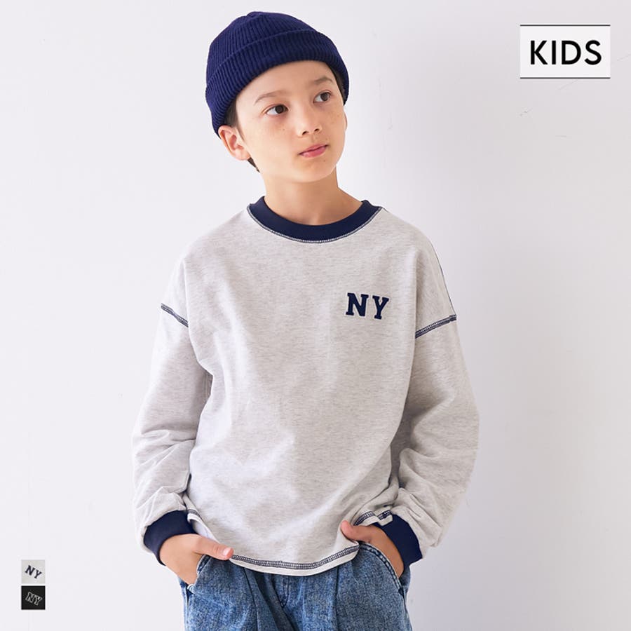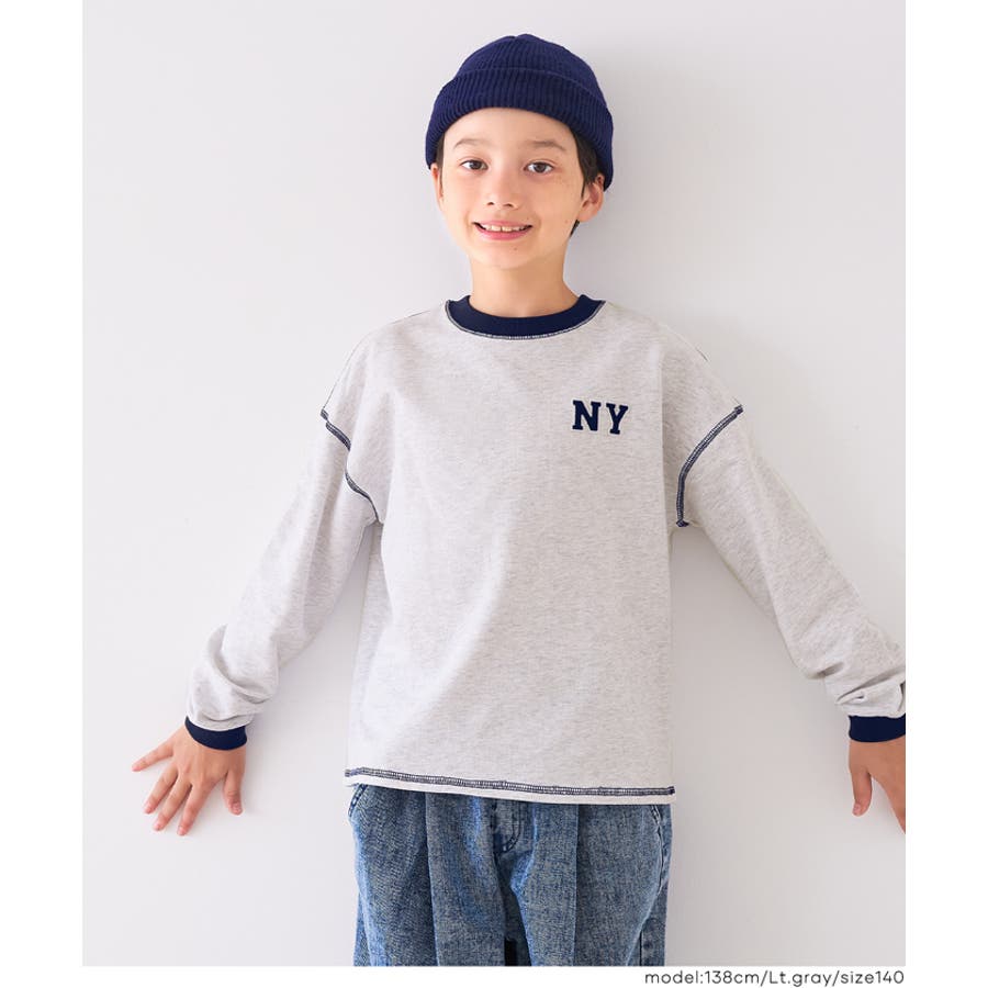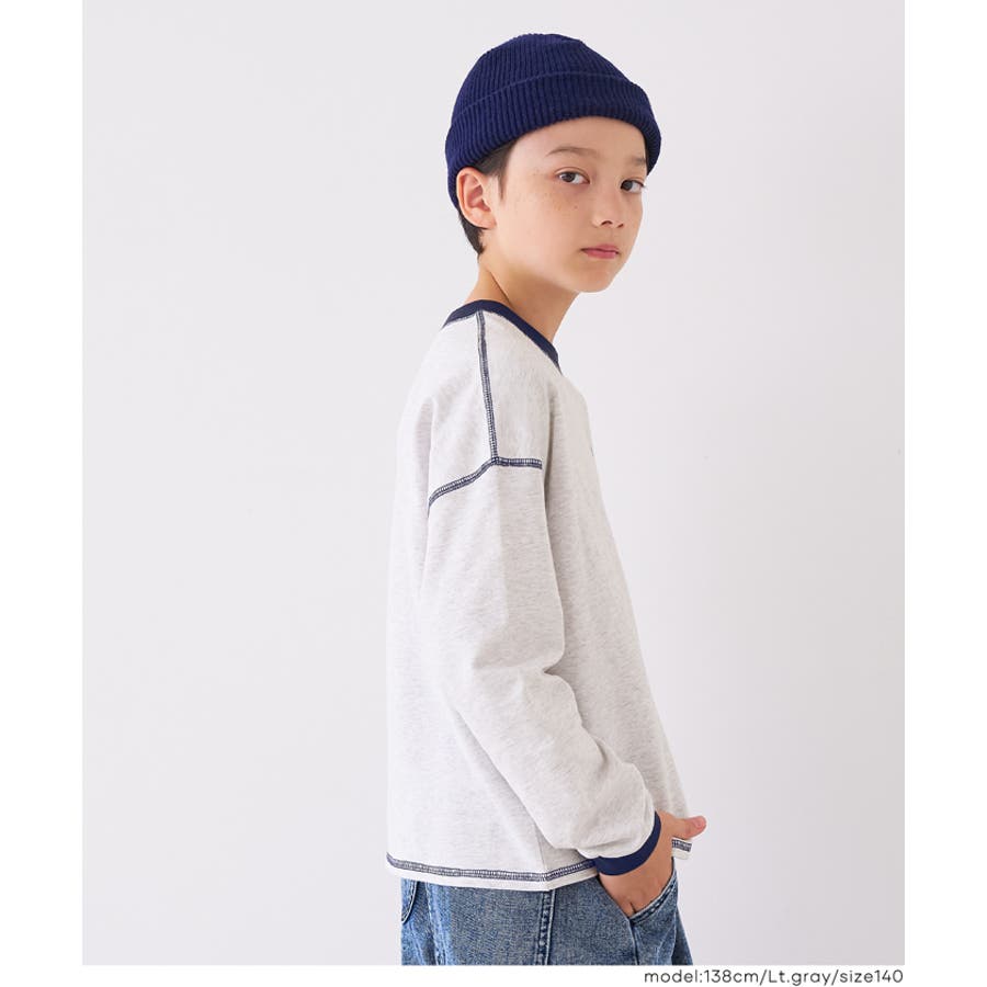 ジュニア トップス Tシャツ ロンT 長袖 裏毛 バイカラー リブ 刺繍 ワンポイント ロゴ カジュアル 男の子 ボーイズ 120 130 140 150 COCA