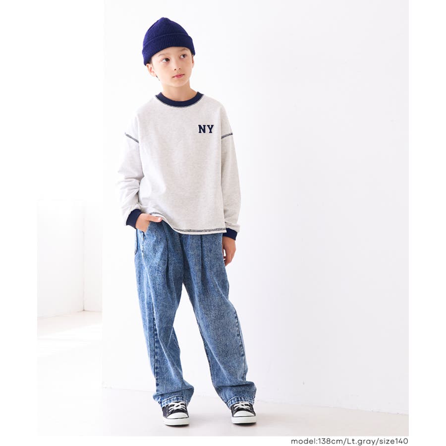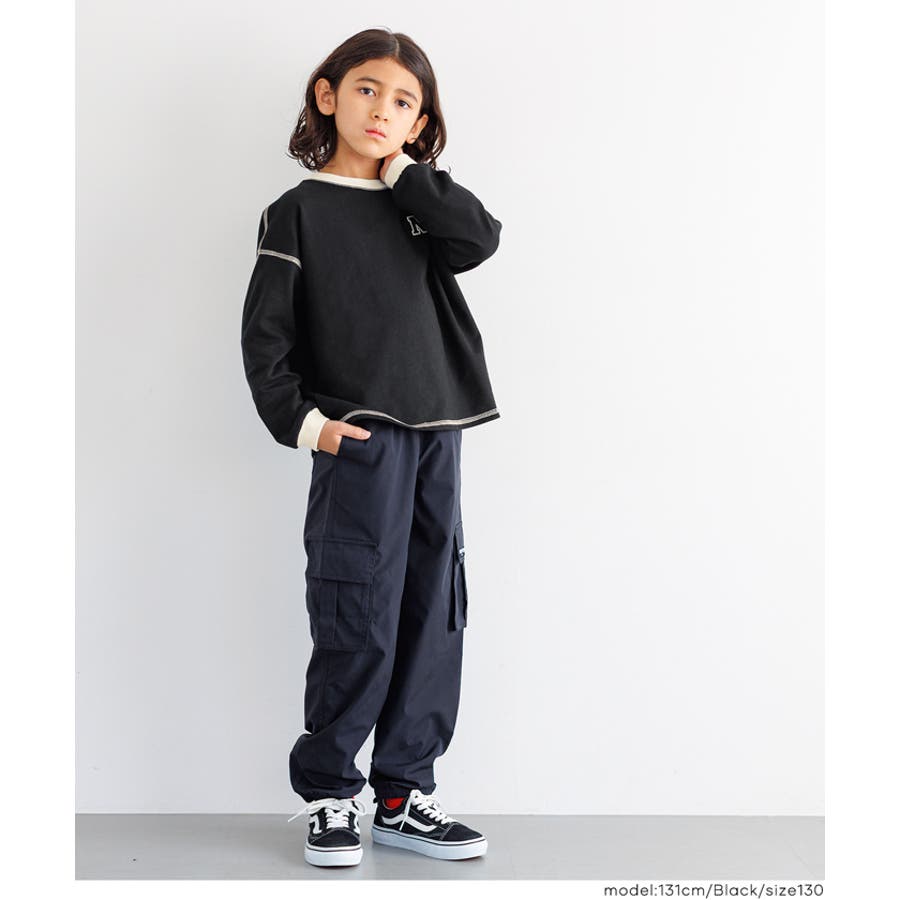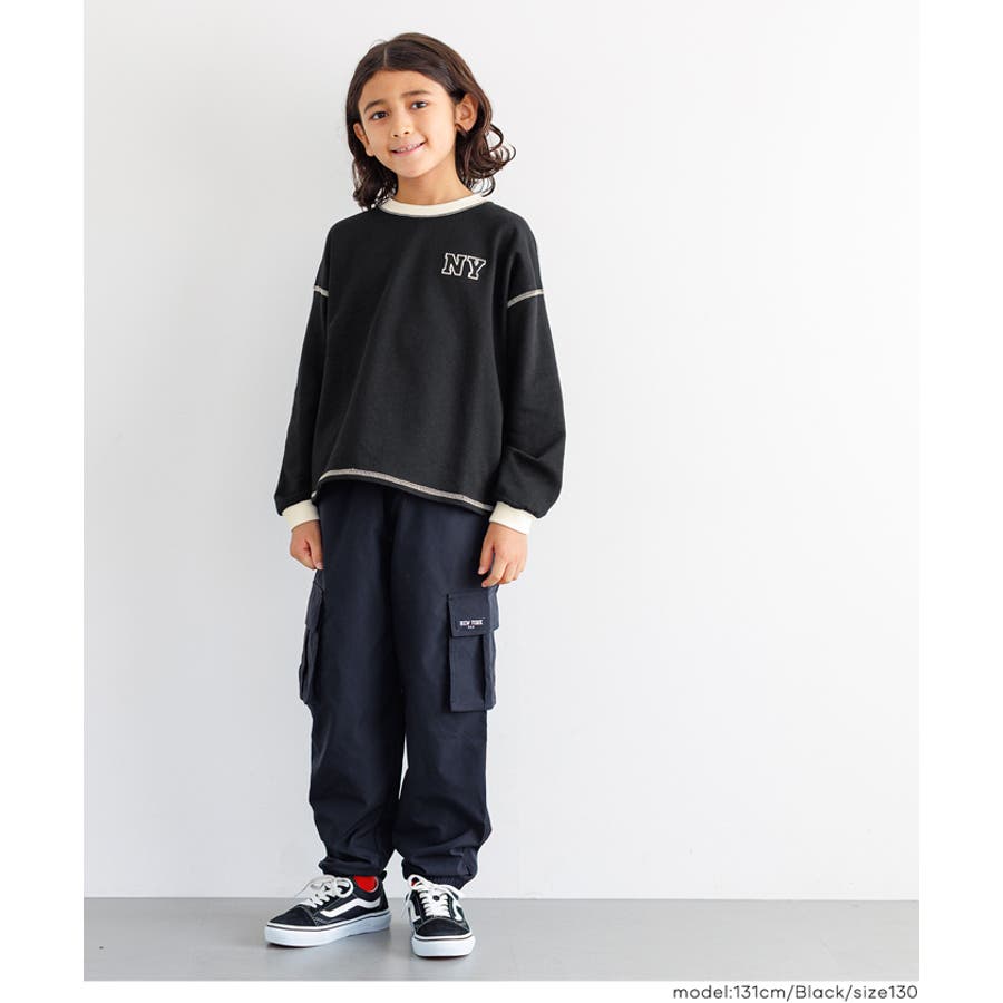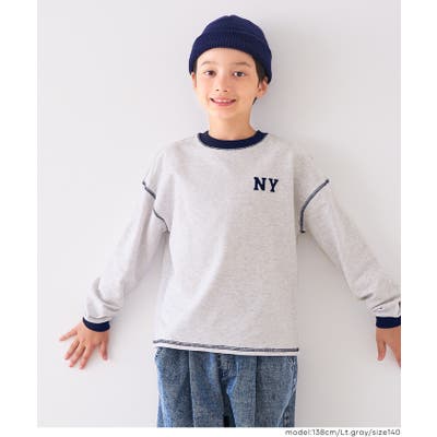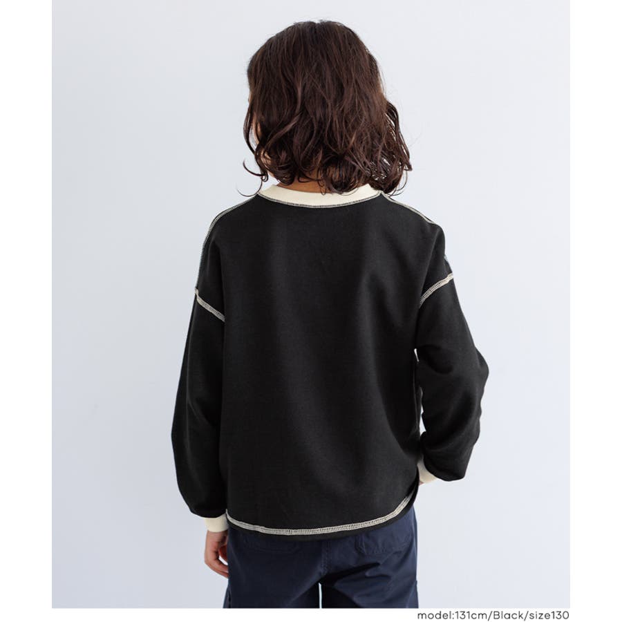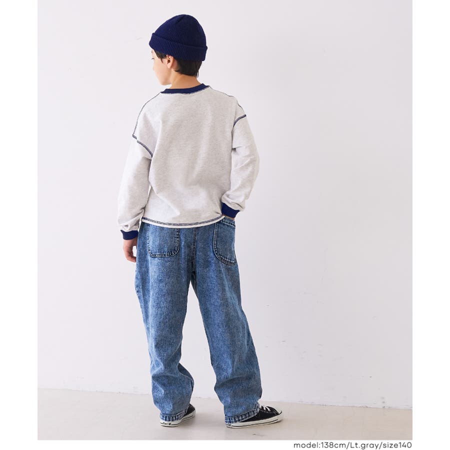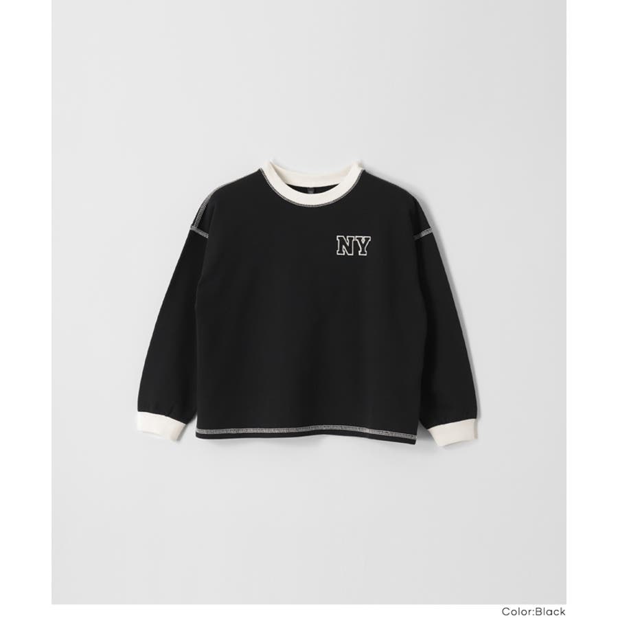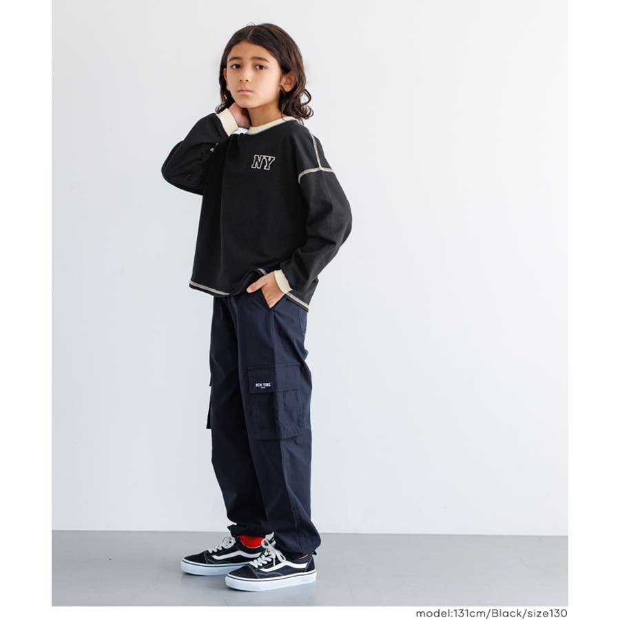 ジュニア トップス Tシャツ ロンT 長袖 裏毛 バイカラー リブ 刺繍 ワンポイント ロゴ カジュアル 男の子 ボーイズ 120 130 140 150 COCA