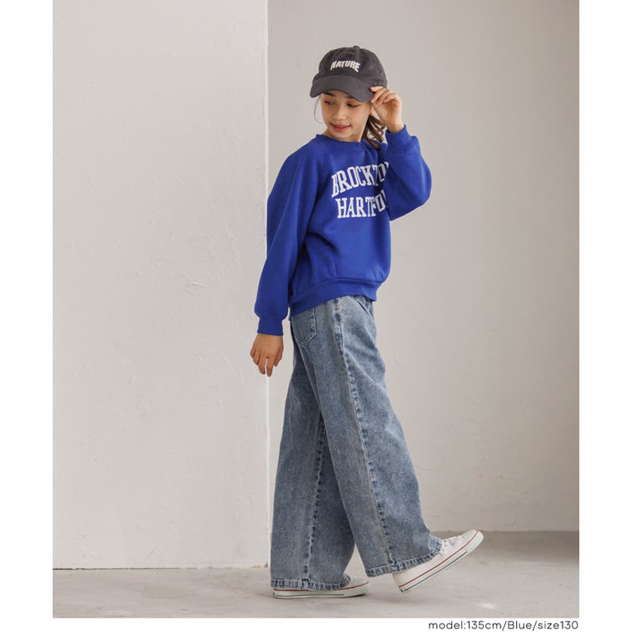 ジュニア トップス スウェット ラグランスウェット 裏起毛 ロゴ 英字 リブ 長袖 ポリエステル100 アルファベット シンプル リラックス 女の子 ガールズ 120 130 140 150