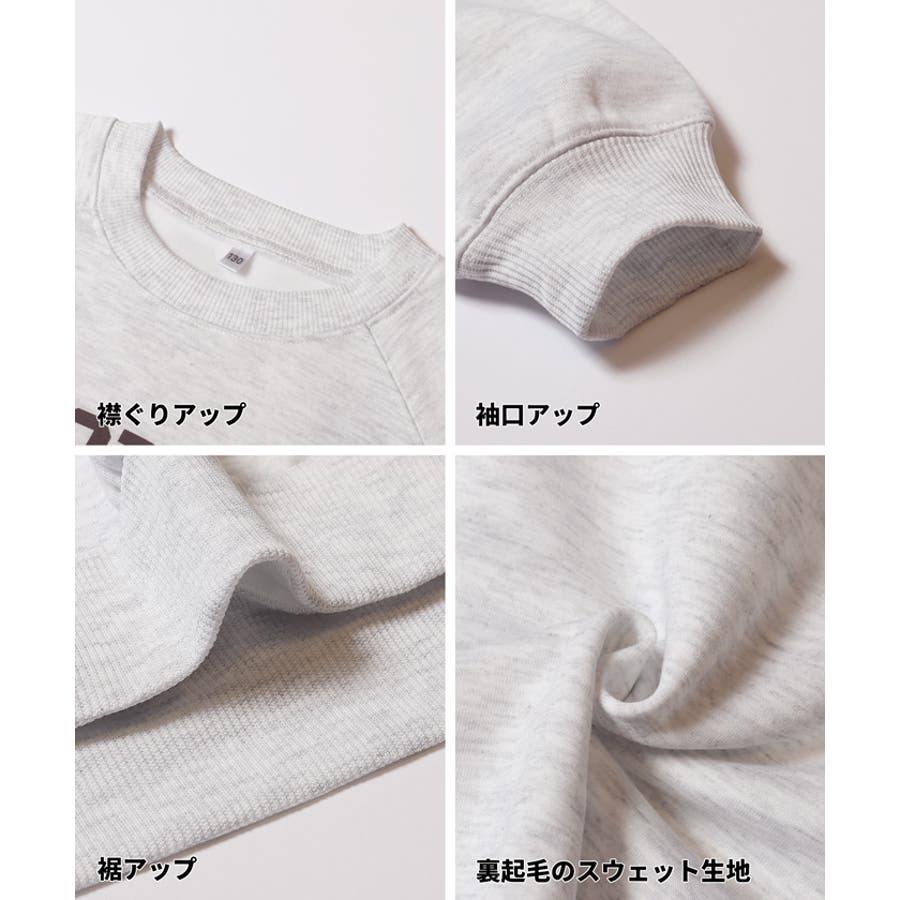 親子でリンクコーデが楽しめる。暖かい裏起毛ラグランロゴスウェット