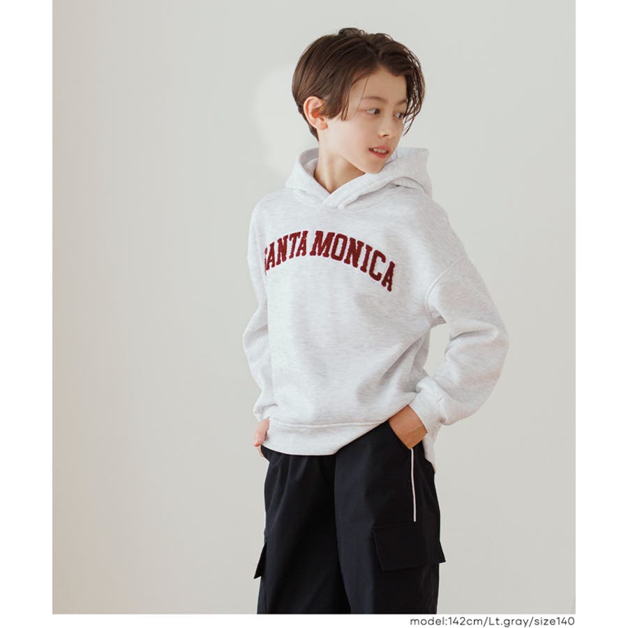 親子お揃い裏起毛刺繍ロゴパーカー キッズ