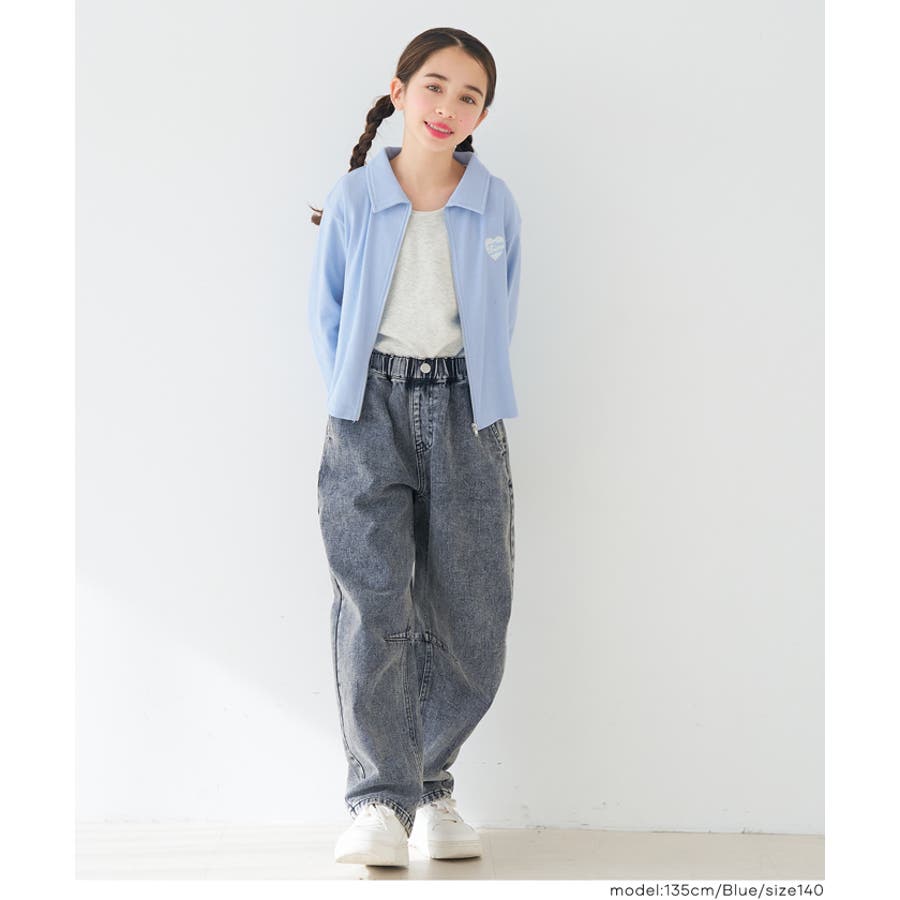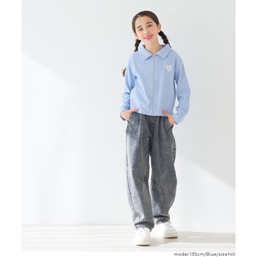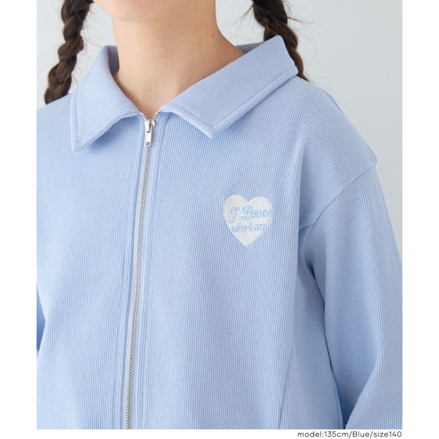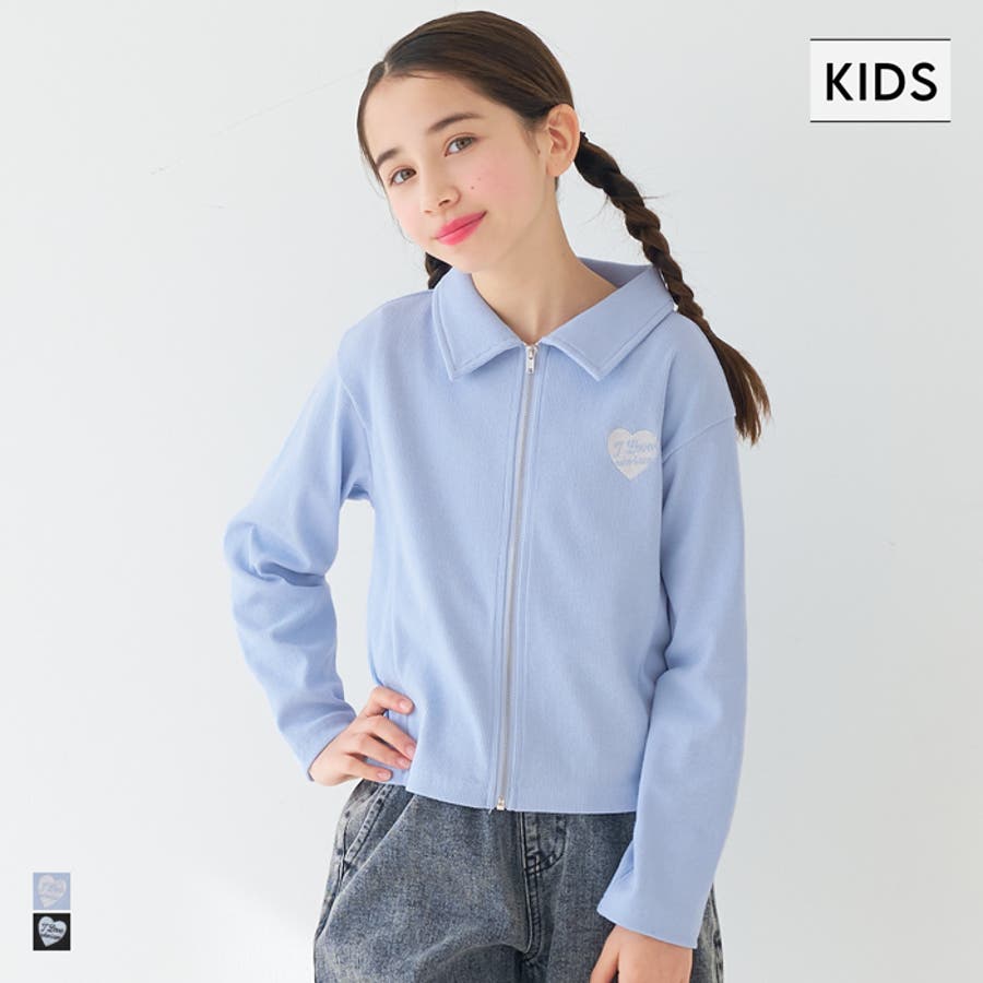ジュニア リブ ジップアップ 刺繍 長袖 ハート 通園 通学 お出かけ カジュアル トップス ロゴ 女の子 韓国 スウェット 120 130 140 150 COCA