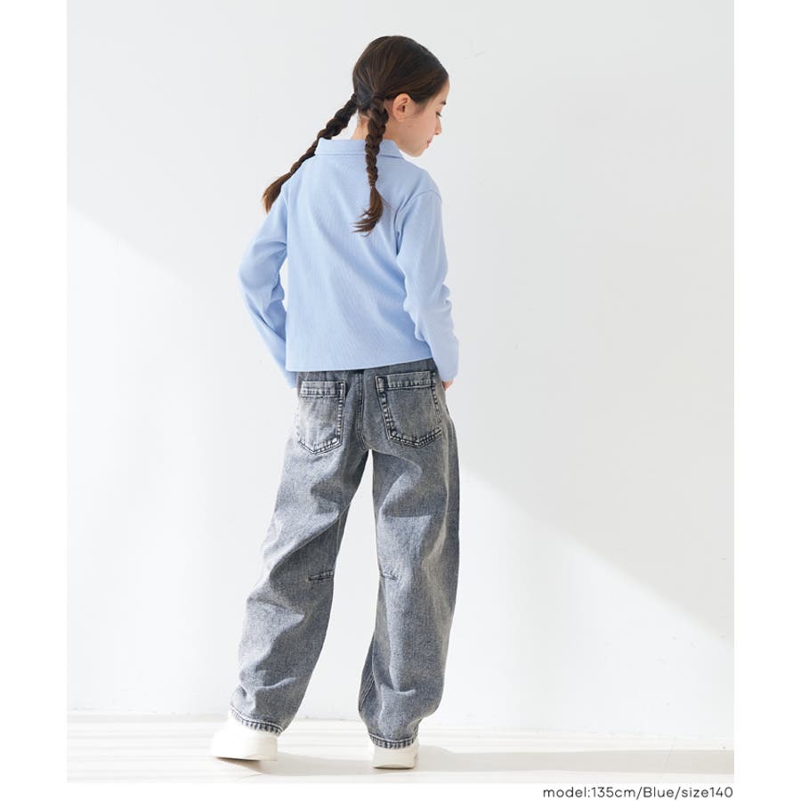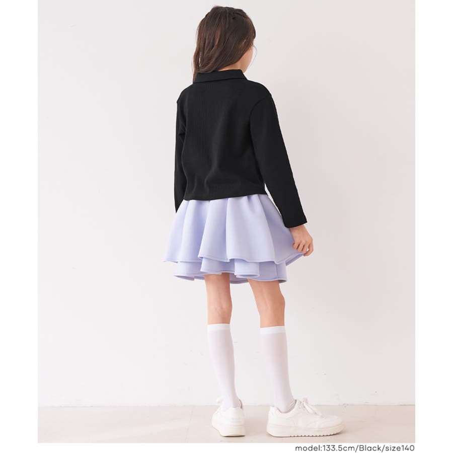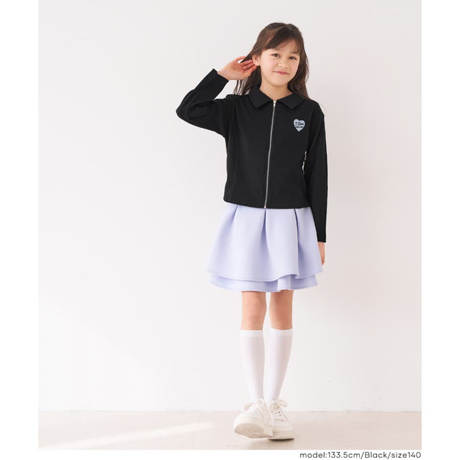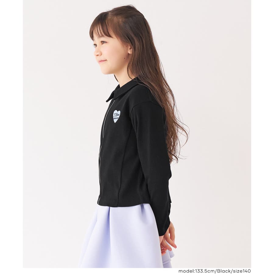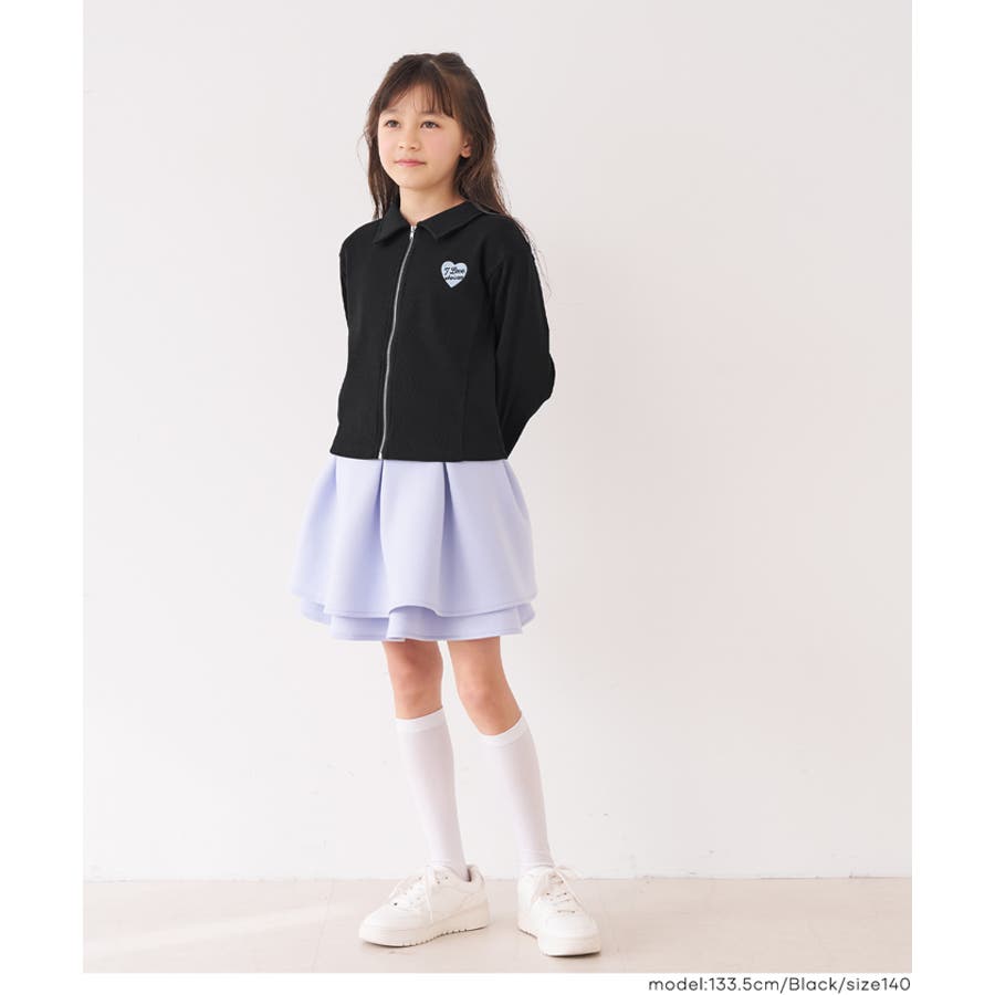 縦ラインを強調するリブ素材に、フロントジップをあしらったキッズ用トップス。