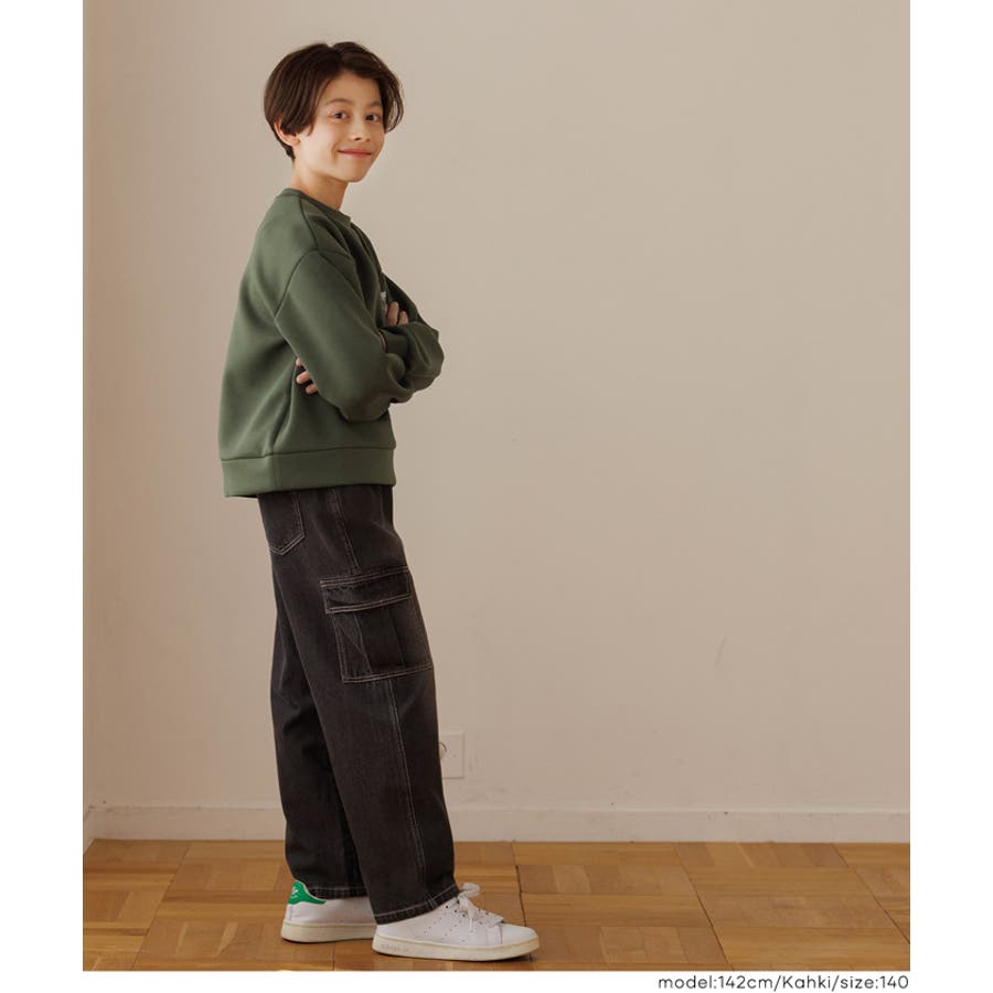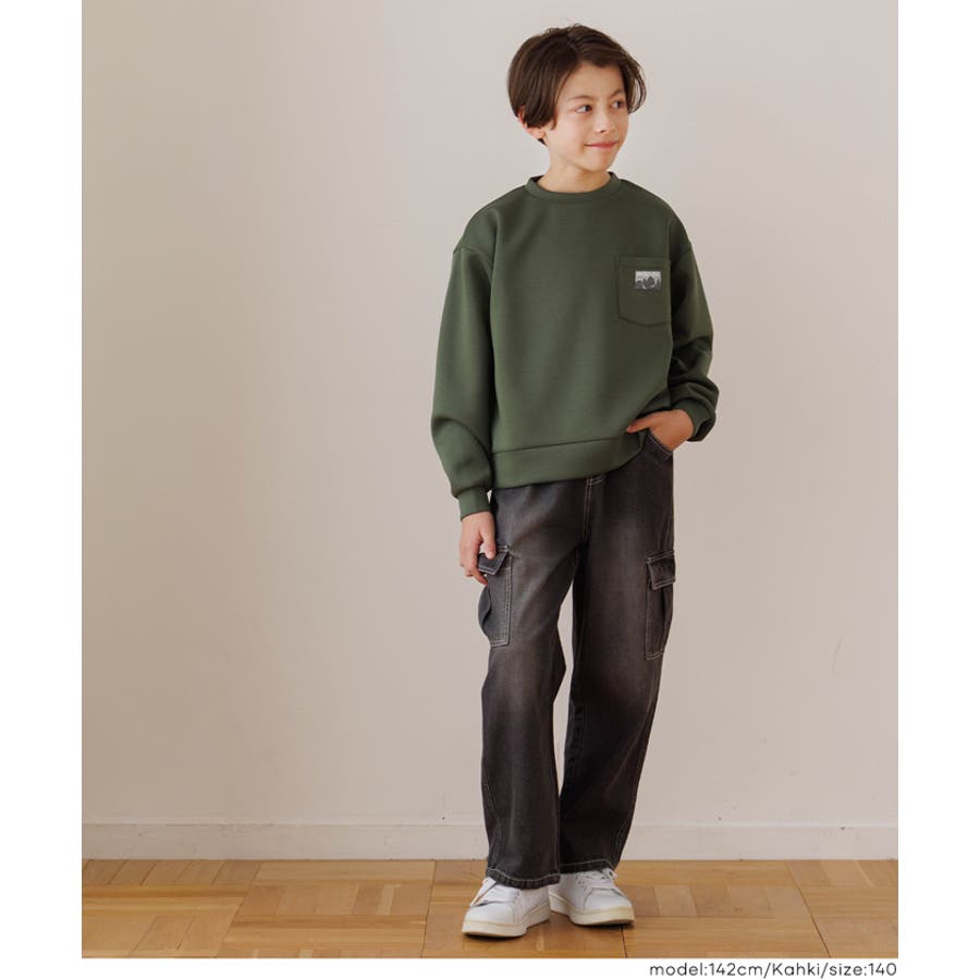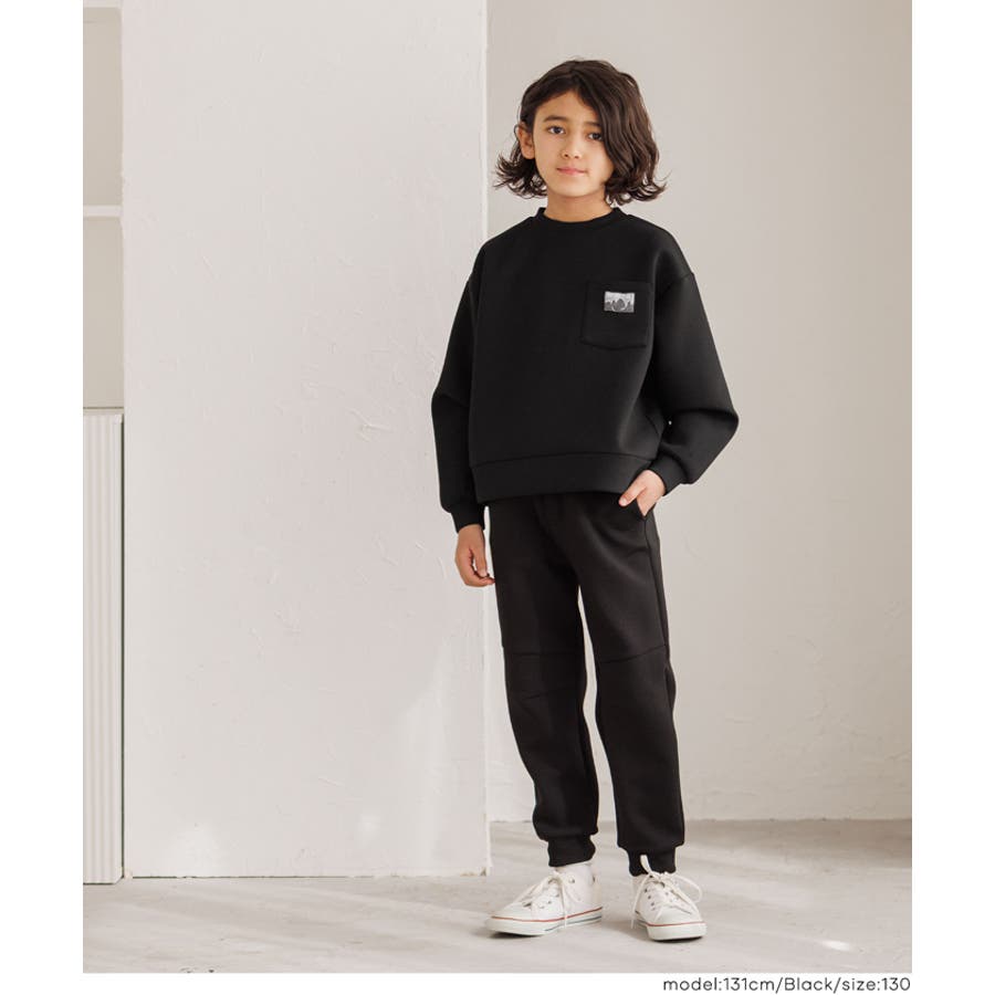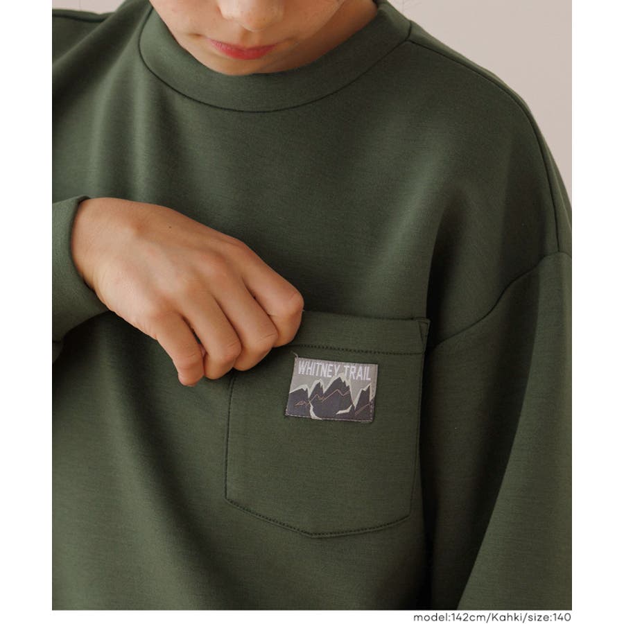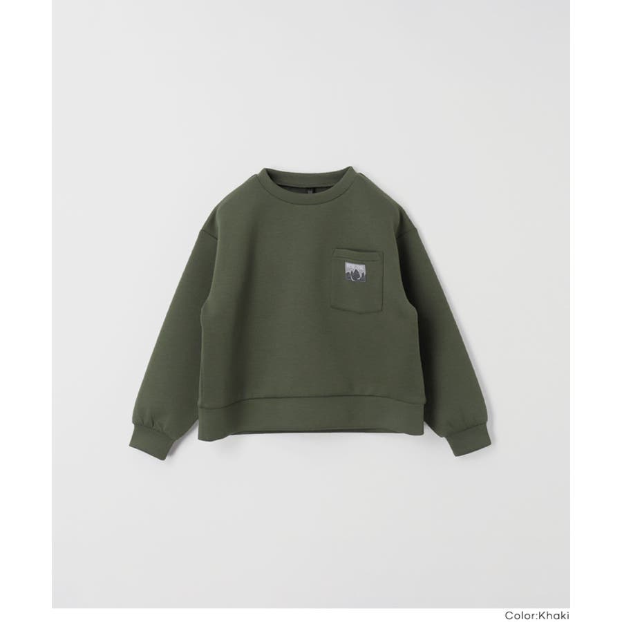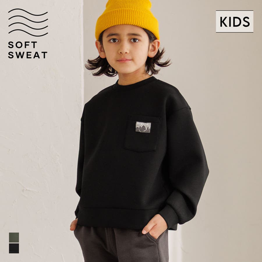 胸元のネームポケットがポイントになった、キッズ用スウェットトップス。