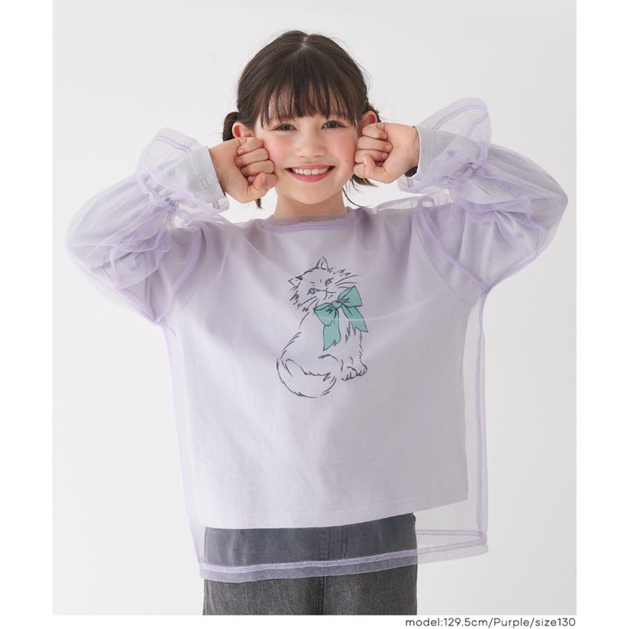 ジュニア トップス チュール セット 長袖 カットソー レイヤード 重ね着 カジュアル お出かけ 日常 学校 女の子 ガールズ 120 130 140 150 COCA