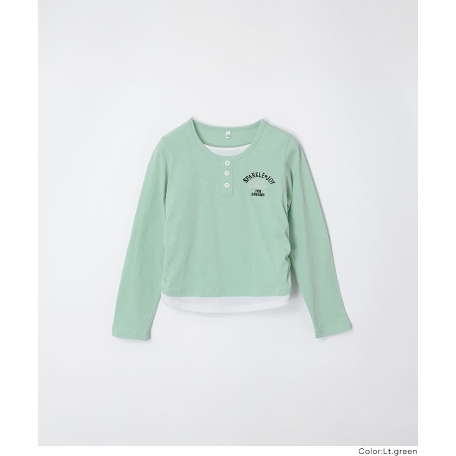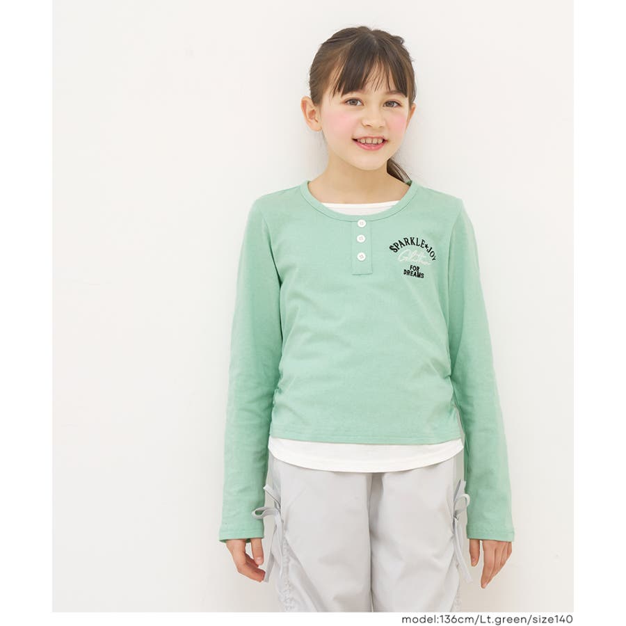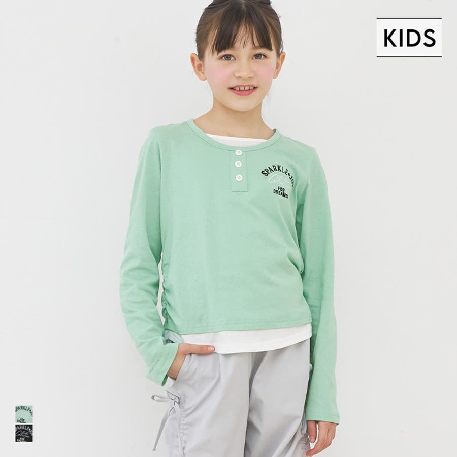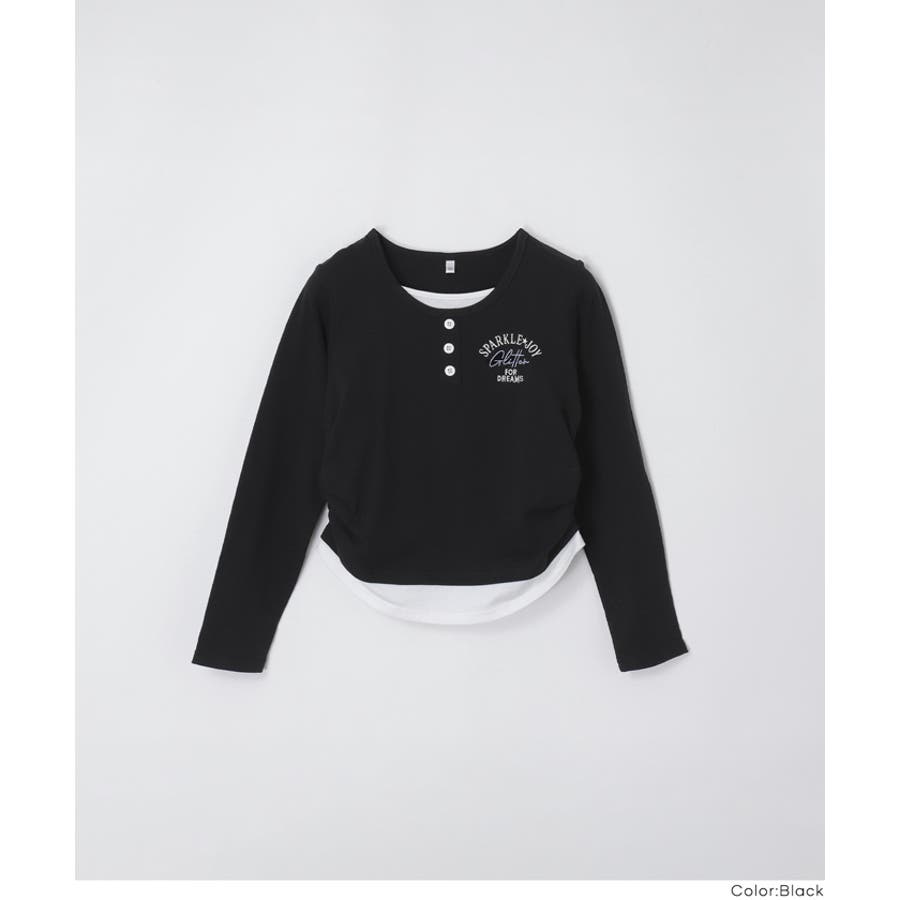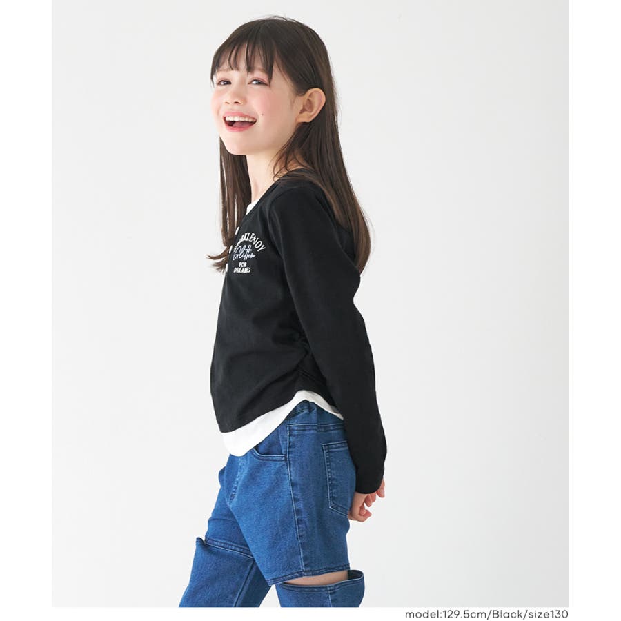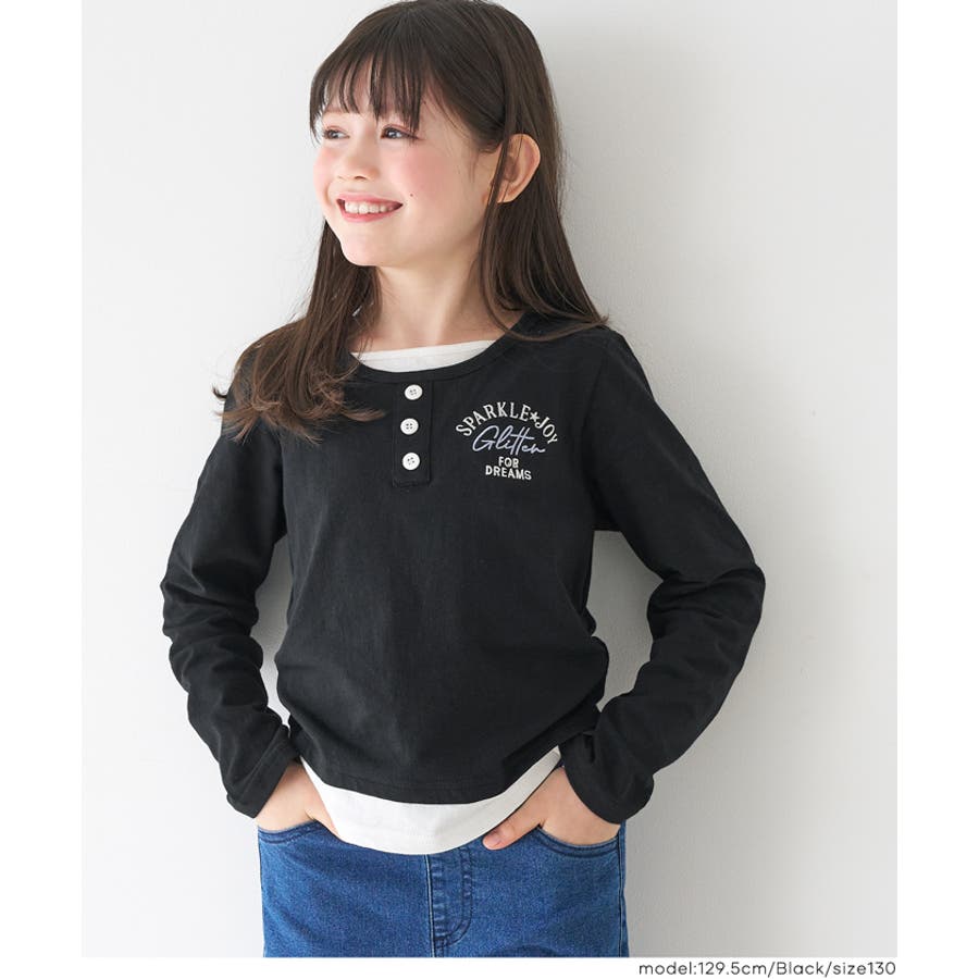 アイテム説明:1枚で重ね着風コーデが完成する、キッズ用レイヤード風トップス。