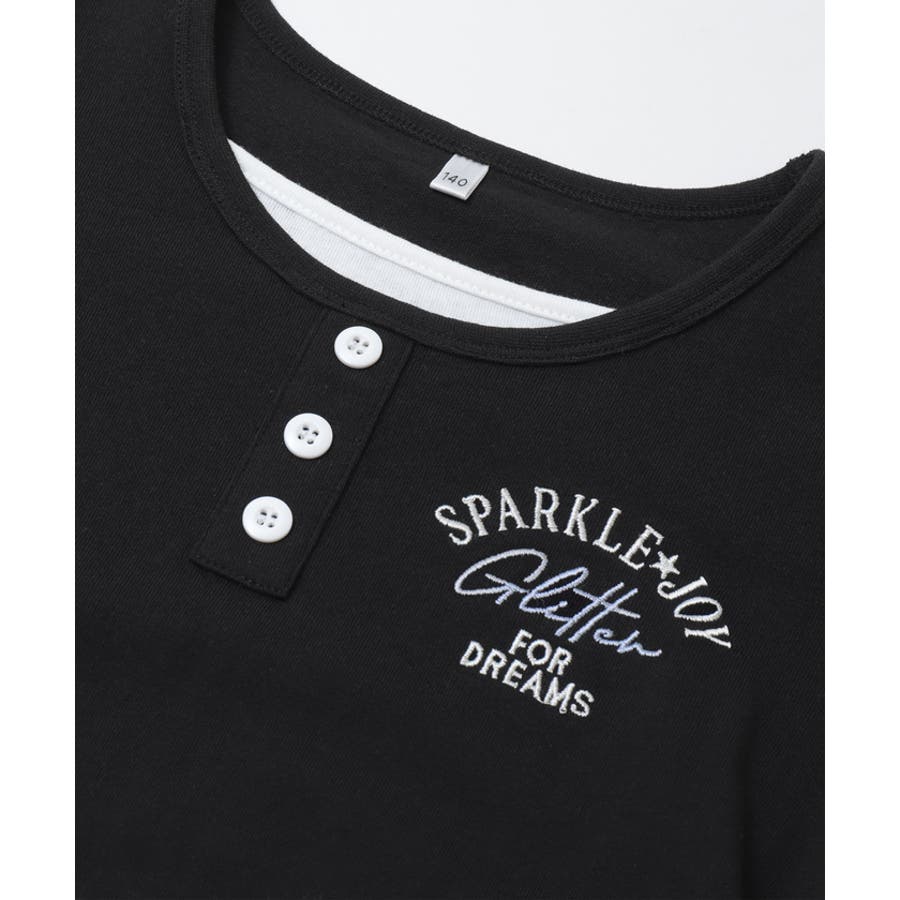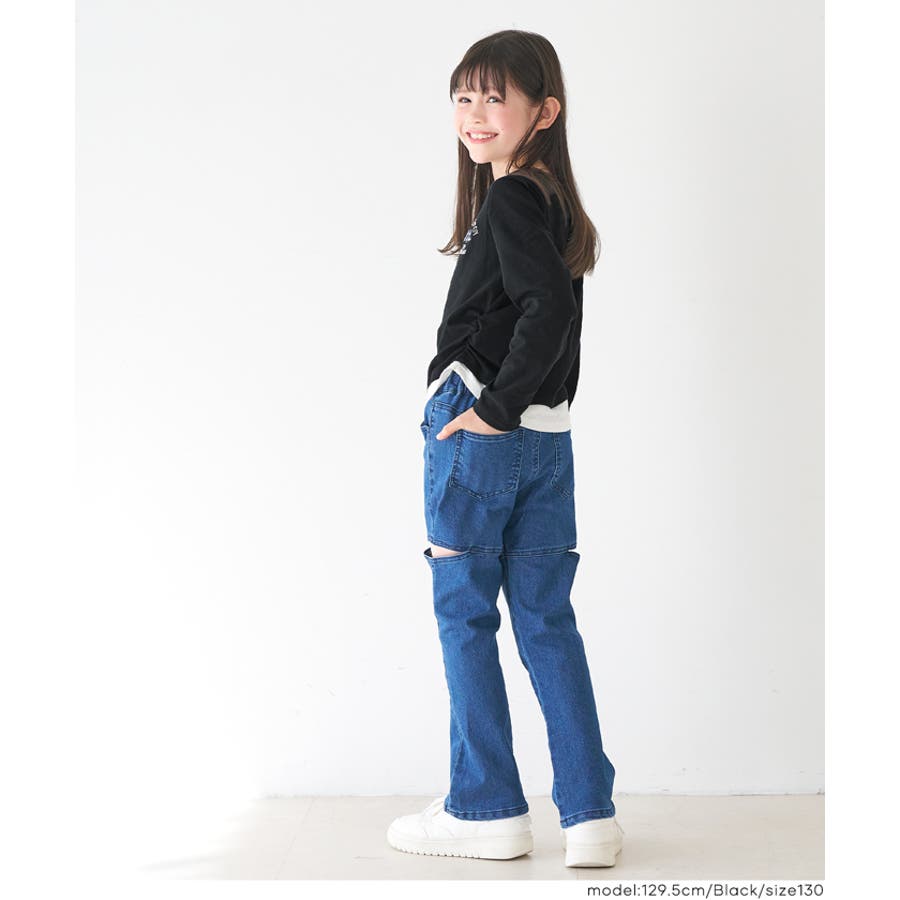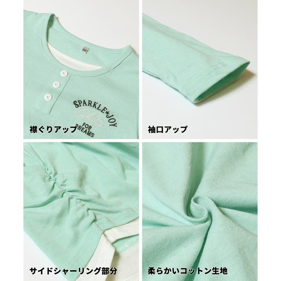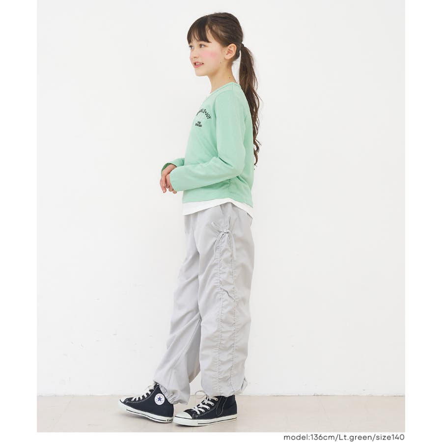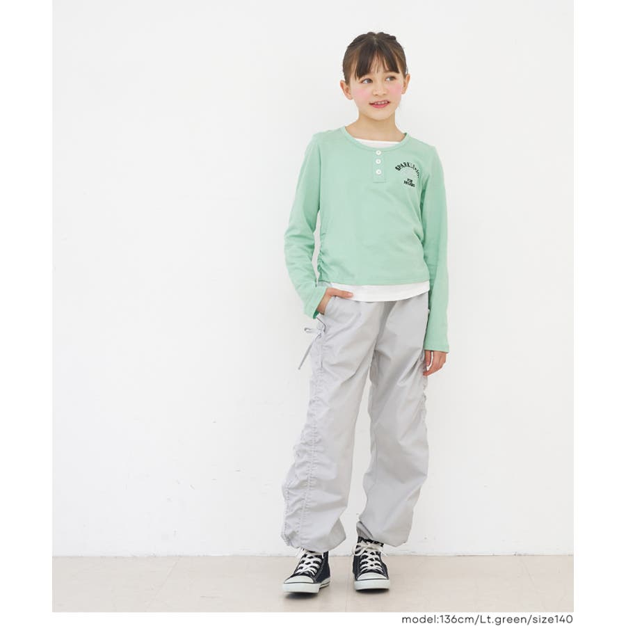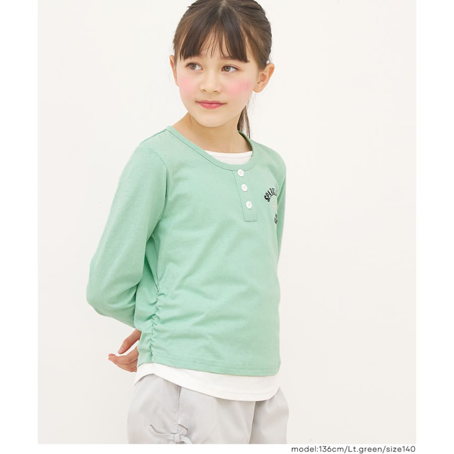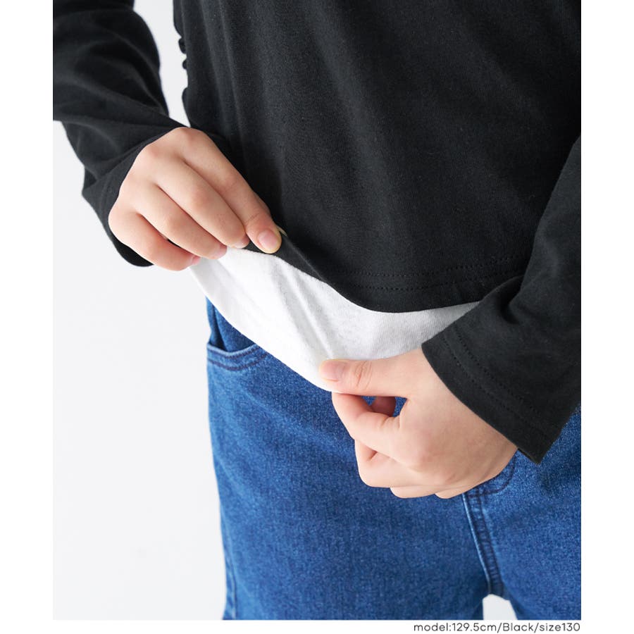 アイテム説明:1枚で重ね着風コーデが完成する、キッズ用レイヤード風トップス。