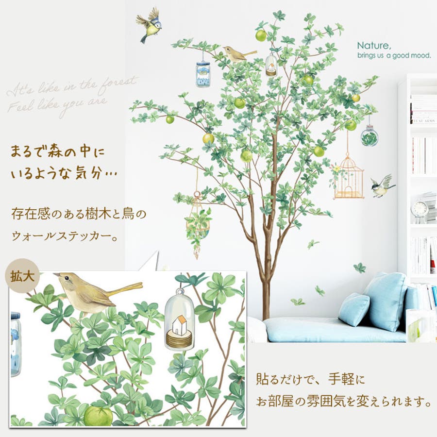 ウォールステッカー Tree&bird 植物