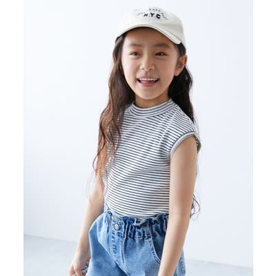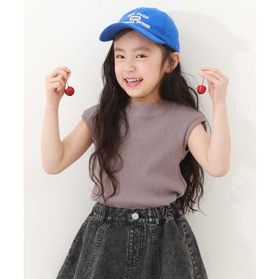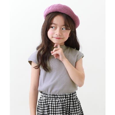 【Gオレンジ】フレンチスリーブ リブ半袖Tシャツ 子供服 キッズ 女の子 Tシャツ トップス