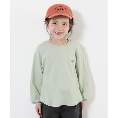 | 胸にハートのワンポイント刺繍がデザインされた1枚。 ふわっとした袖のシルエットもポイント。 袖がリブ仕様なので、手を洗うときや活動的なシーンで袖まくりする際にも役立ちます。 |