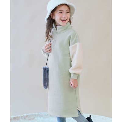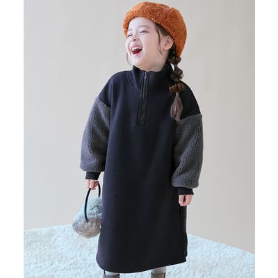 | トレンド感のあるハーフジップの裏起毛ワンピース。 ボア素材の袖がぐっと季節感を演出してくれるアイテムです。 |