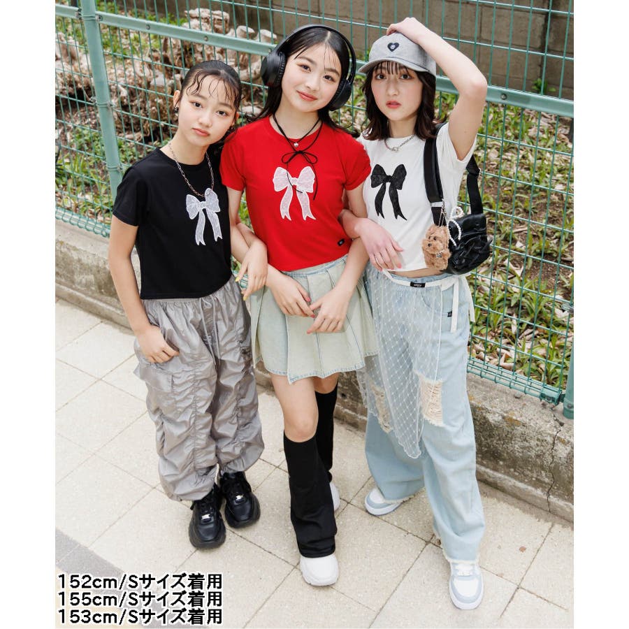 ガーリー感あるリボンレースのモチーフTシャツはグランジ感あるボトムと合わせるのが今っぽくておすすめ!!