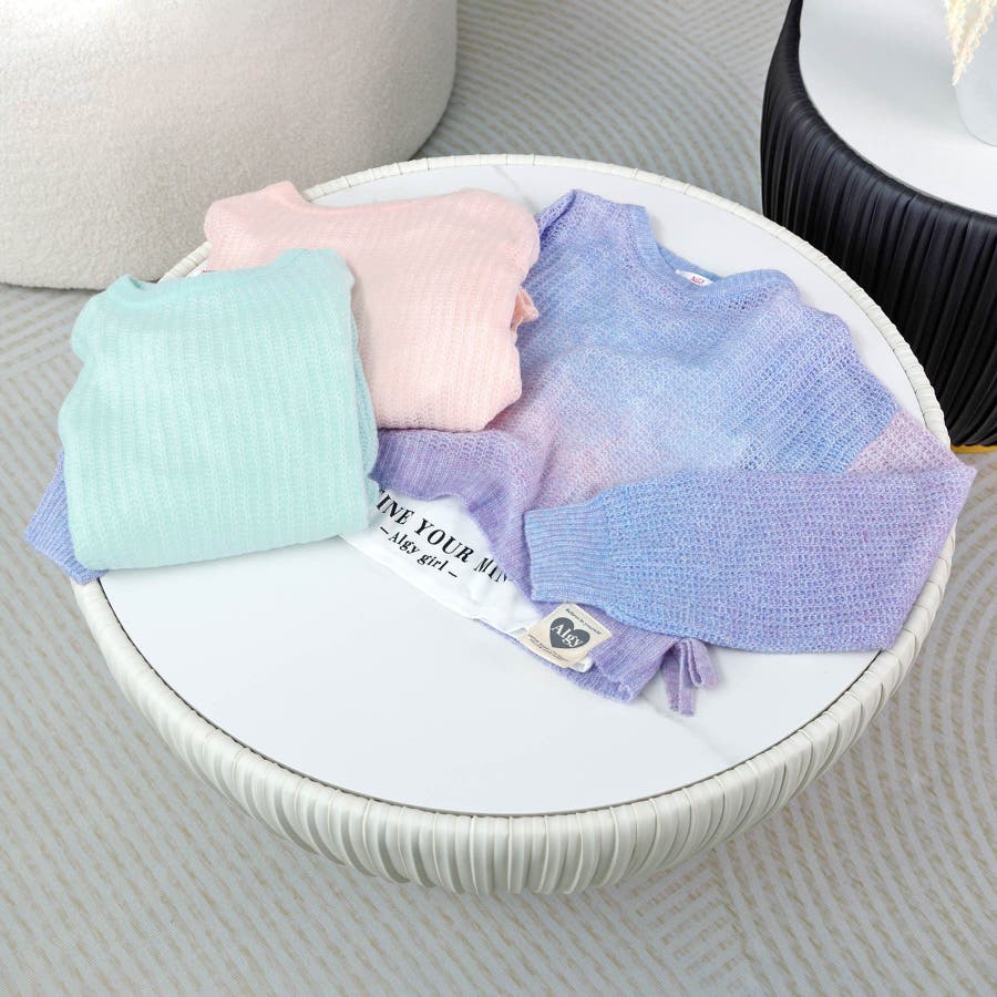 【レインボー】ふんわり透かし編みニット&インナーセット