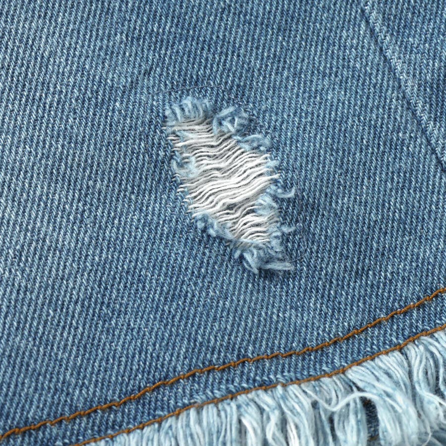 この商品はユーズド感を出す為、製品洗い・製品染め・ブリーチ(脱色)・生地切れ・糸切れ等の2次加工を施しております。