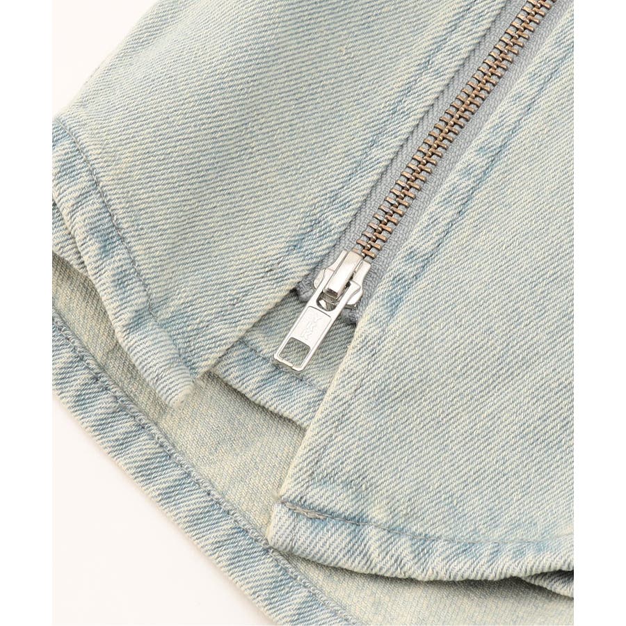 この商品はユーズド感を出す為、製品洗い・製品染め・ブリーチ(脱色)・生地切れ・糸切れ等の2次加工を施しております。