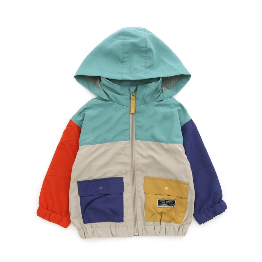 【ブルー】【フードがしまえる】カラバリウィンドブレーカー