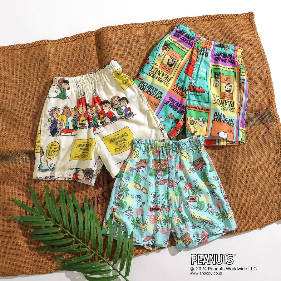 【レインボー】PEANUTSコラボ アロハパンツ 4分丈