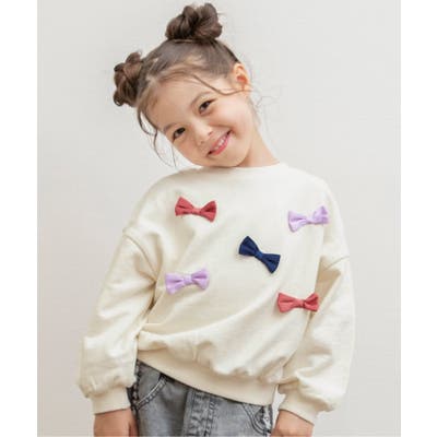 【チャコール】WEB限定 リボンモチーフトレーナー