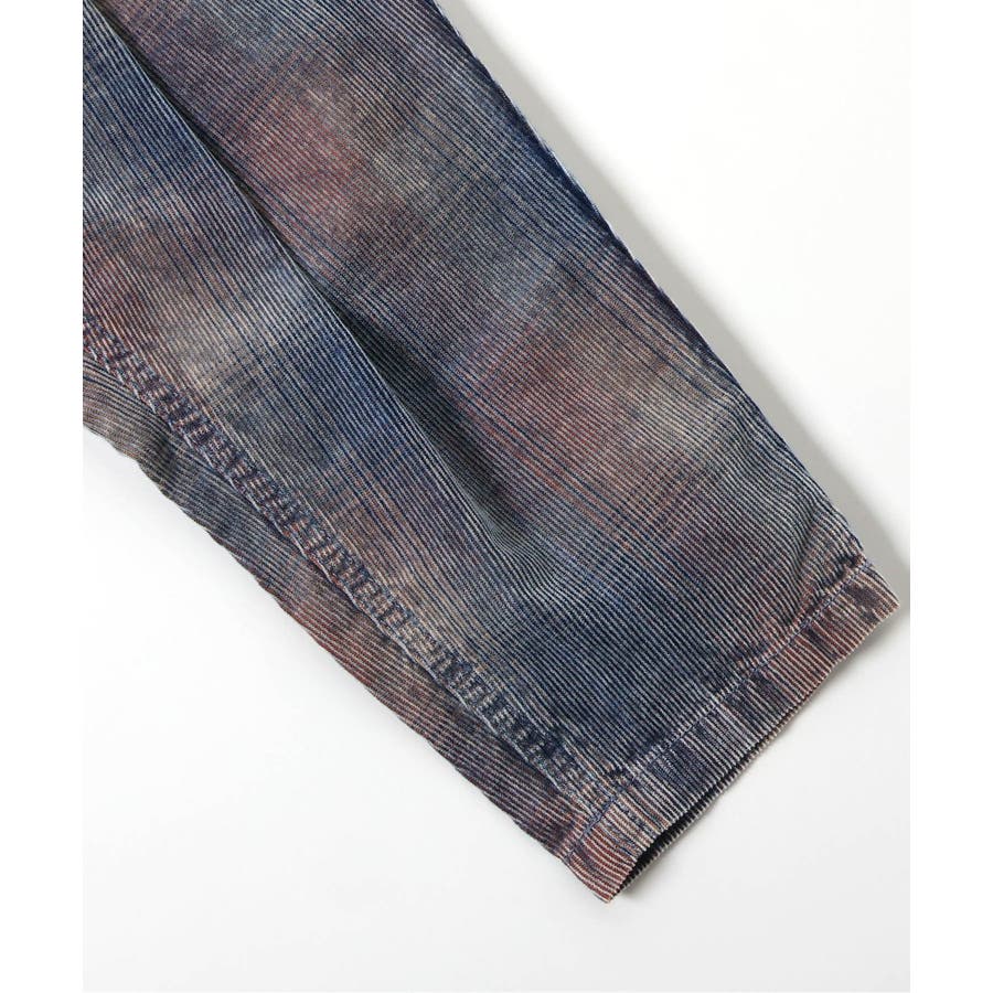 この商品はユーズド感を出す為、製品洗い・製品染め・ブリーチ(脱色)・生地切れ・糸切れ等の2次加工を施しております。
