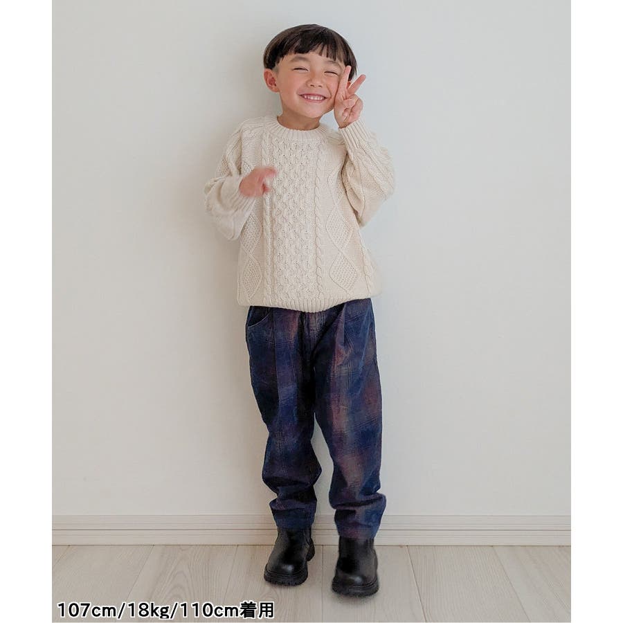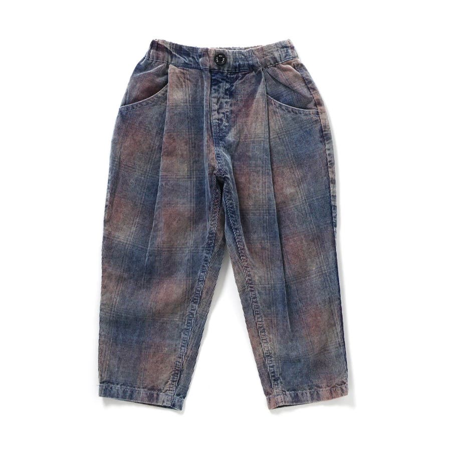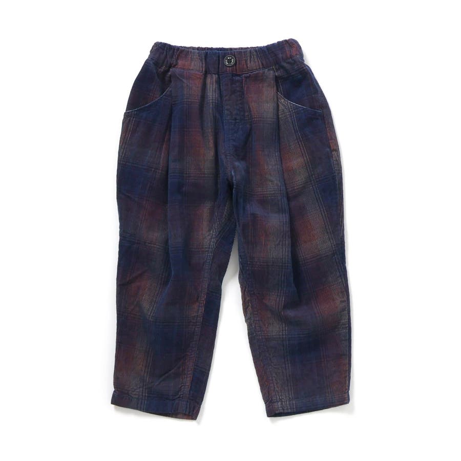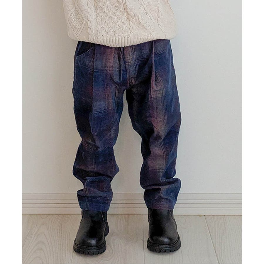 インディゴコーデユロイチェックパンツ