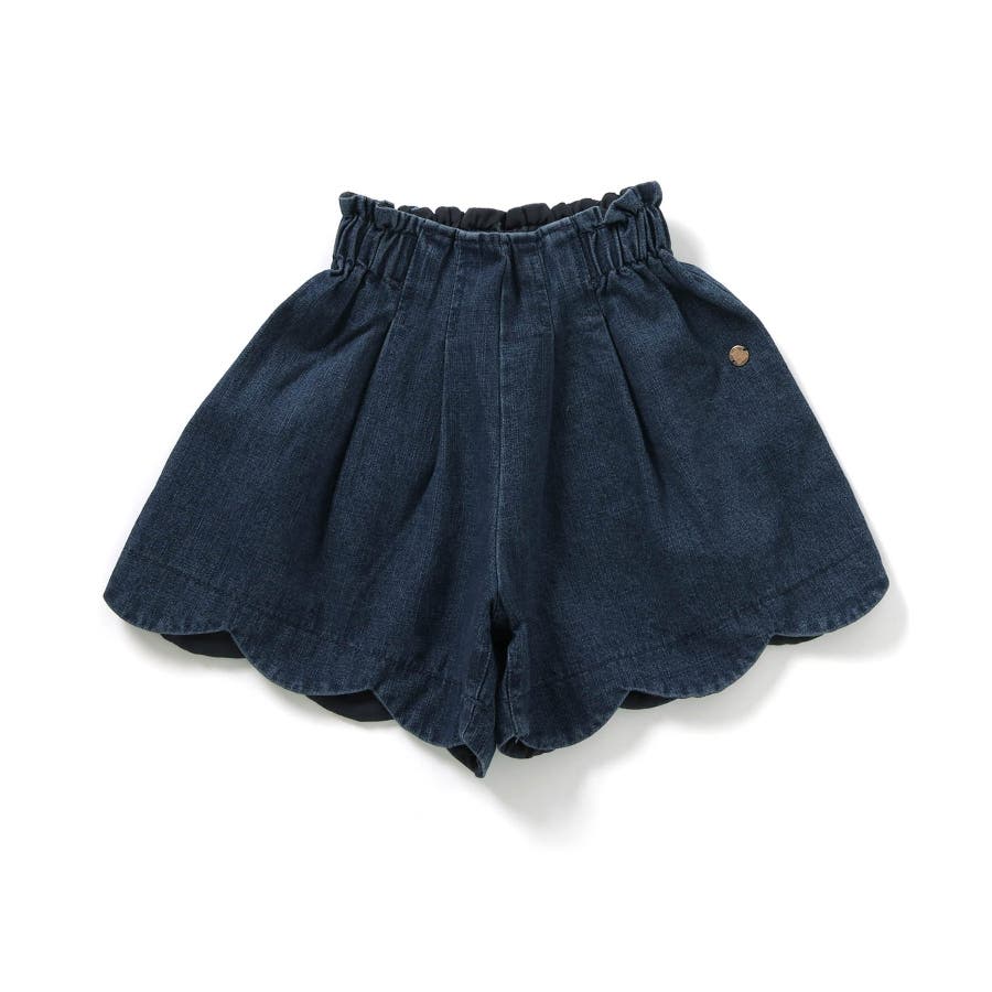 【デニム】スカラップショートパンツ ショート丈