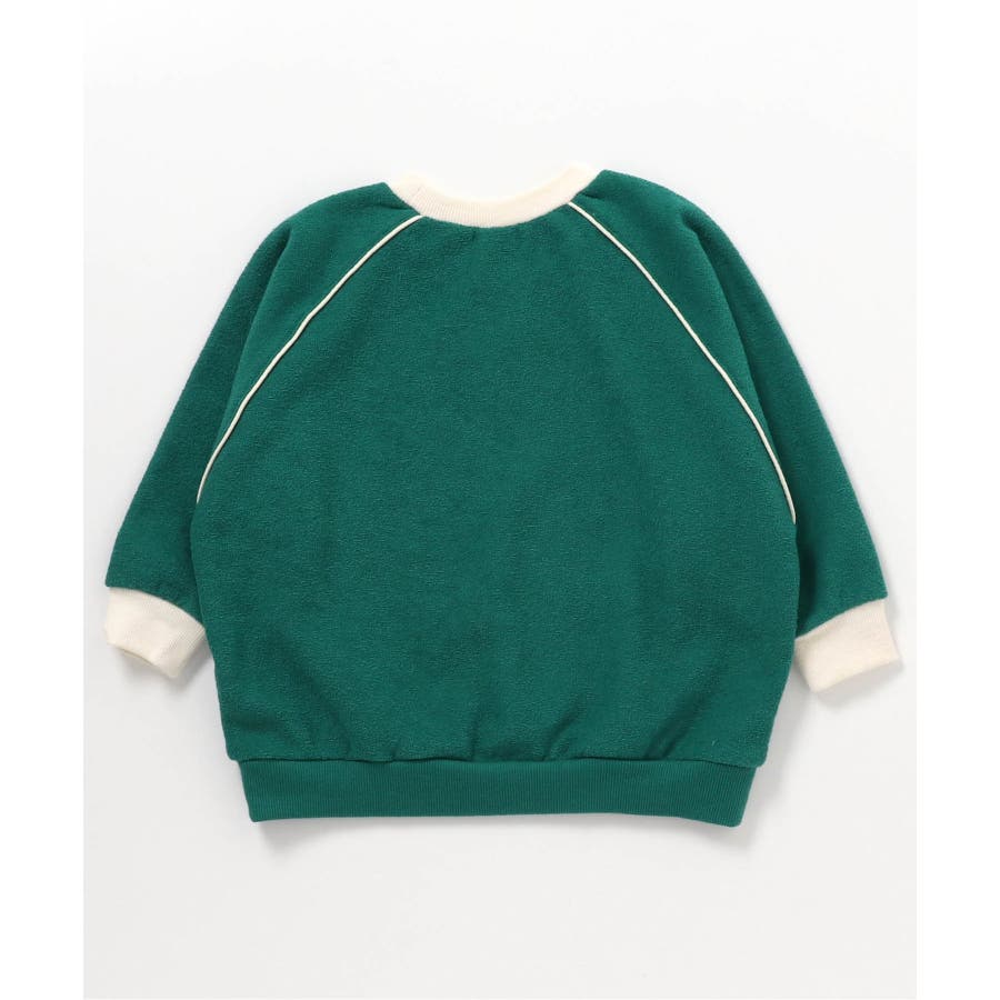 ラグランシルエットに配色の効いたパイピングがポイント。