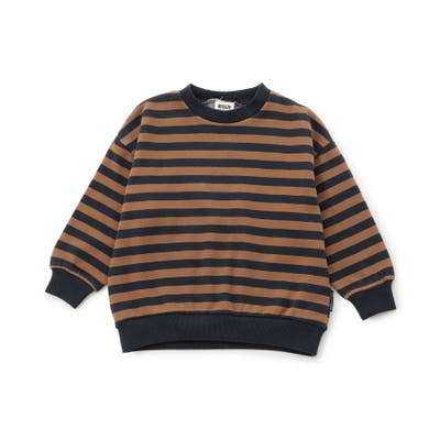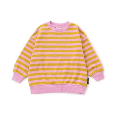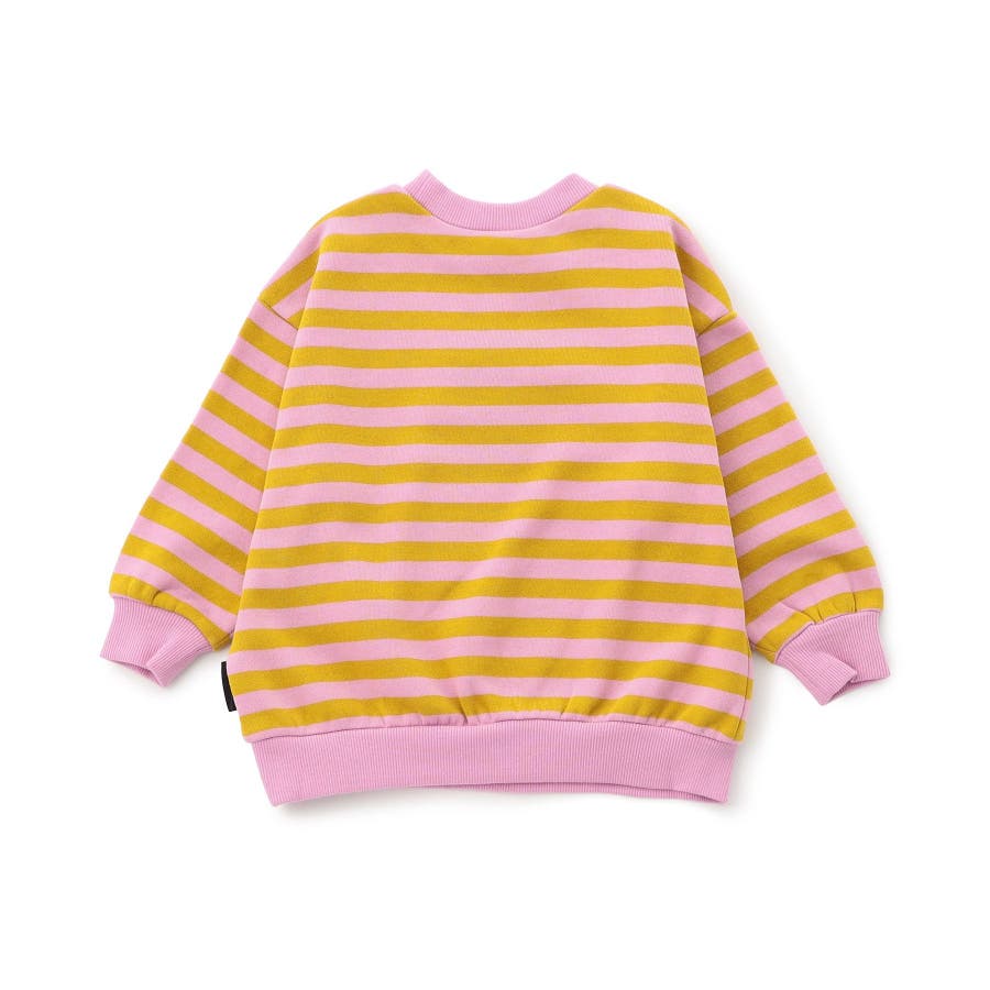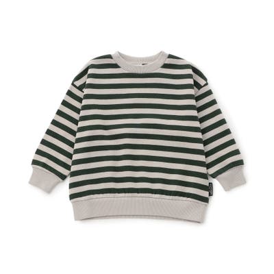 細目のボーダーがおしゃれなトレーナー。