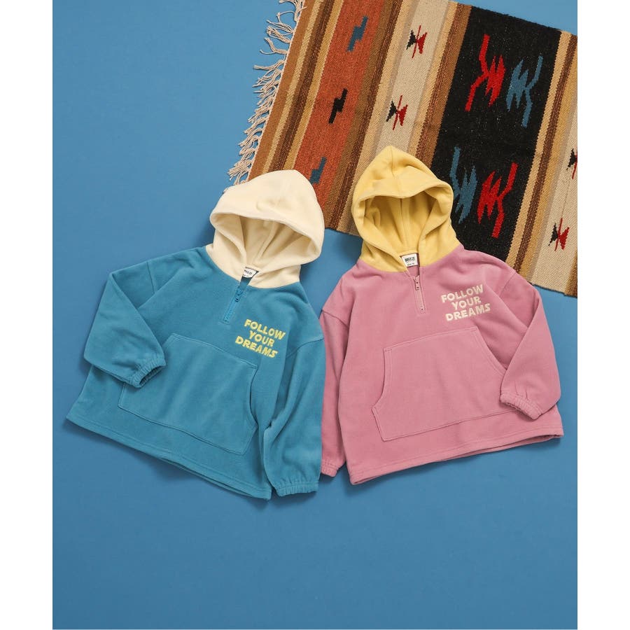 フード配色フリースパーカー