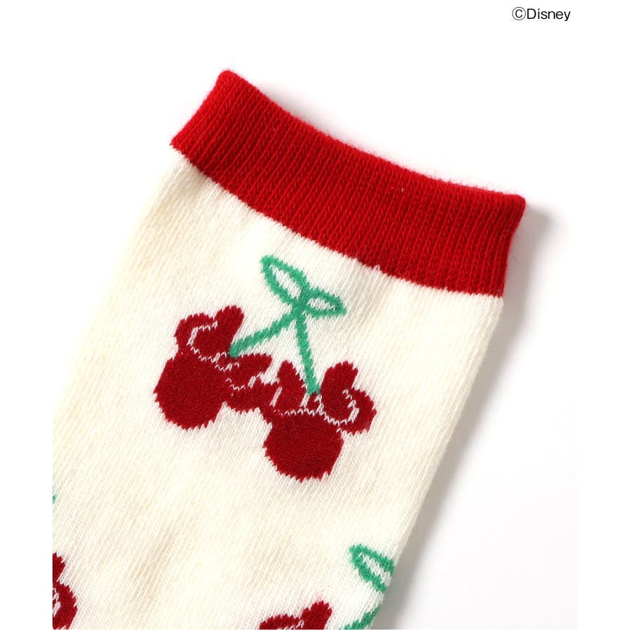オフホワイト:リブ目にミニー刺繍+リボン付き