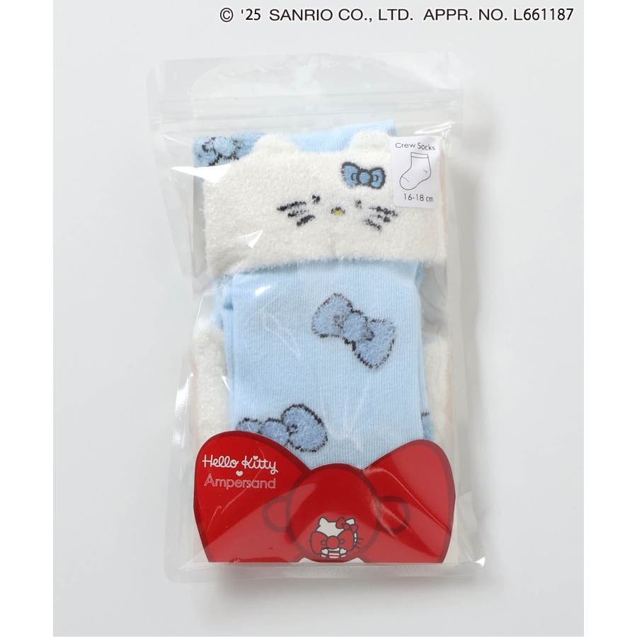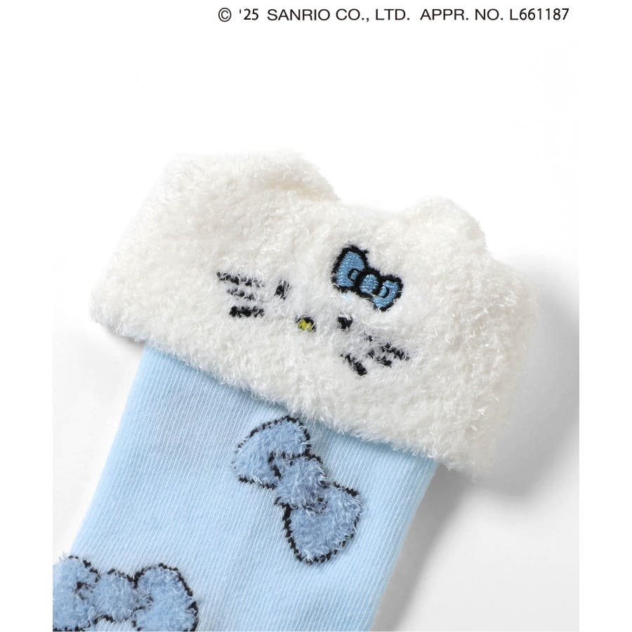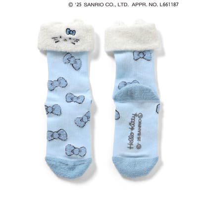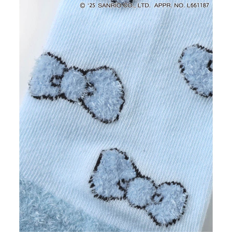 キティちゃんのリボン総柄と折り返し部分のシャギー糸で、立体感のあるキュートなソックス♪