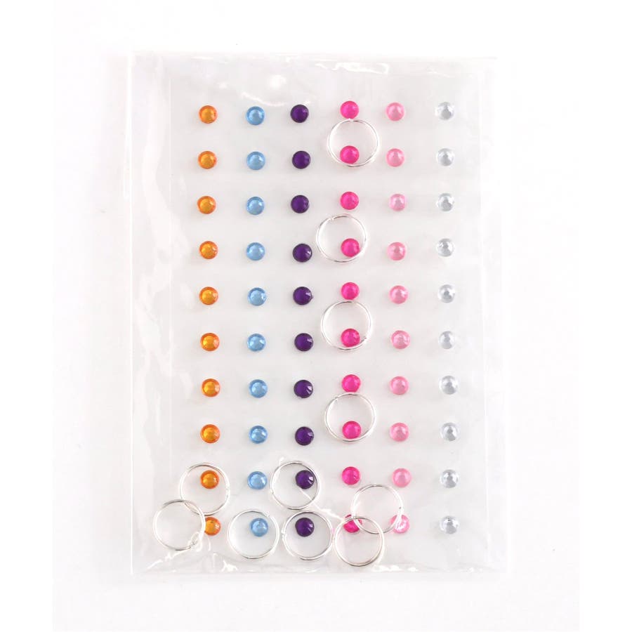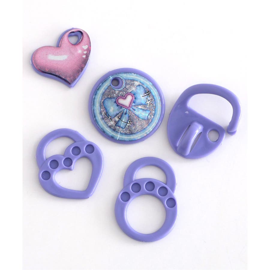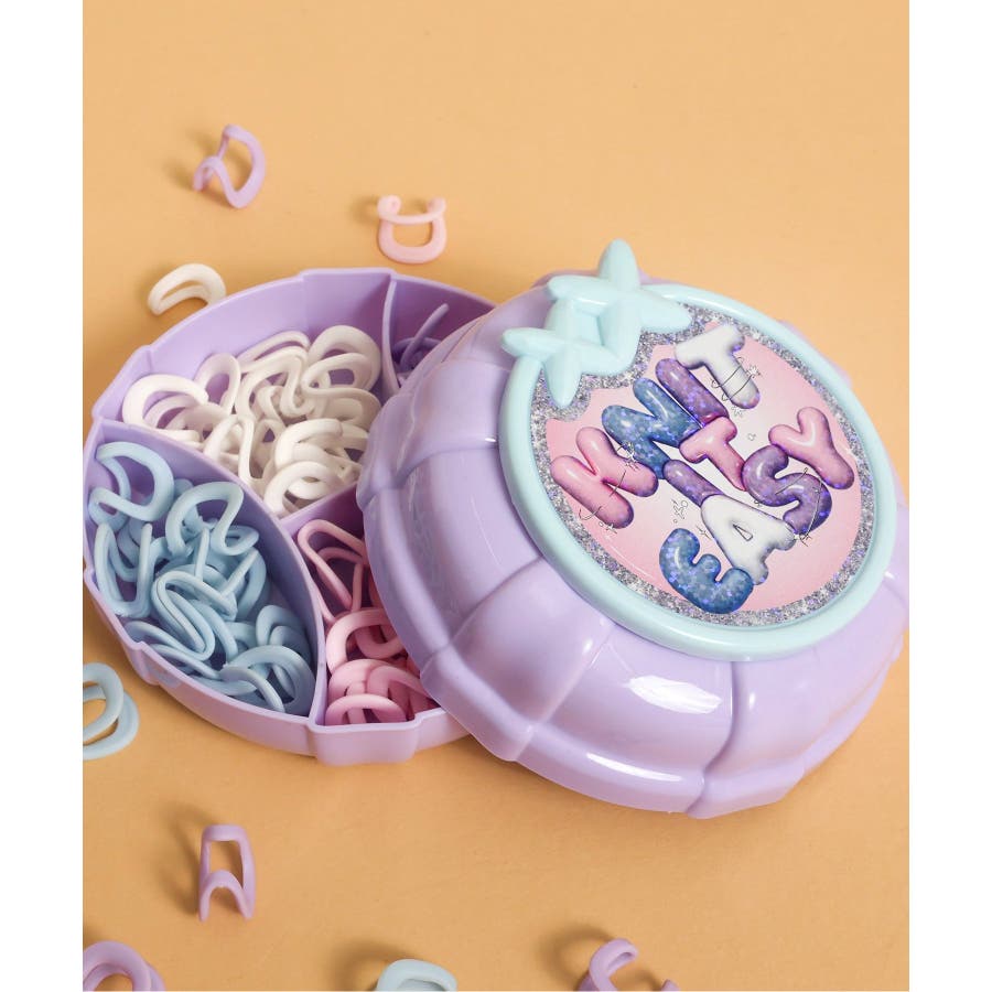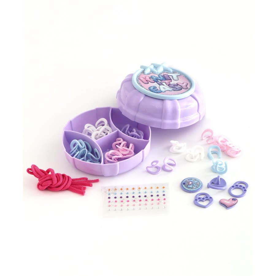 編地袋×4、蓋付きケース、紐×3、付属パーツ2枚、丸カン×約8、ラインストーン×1シート、シール